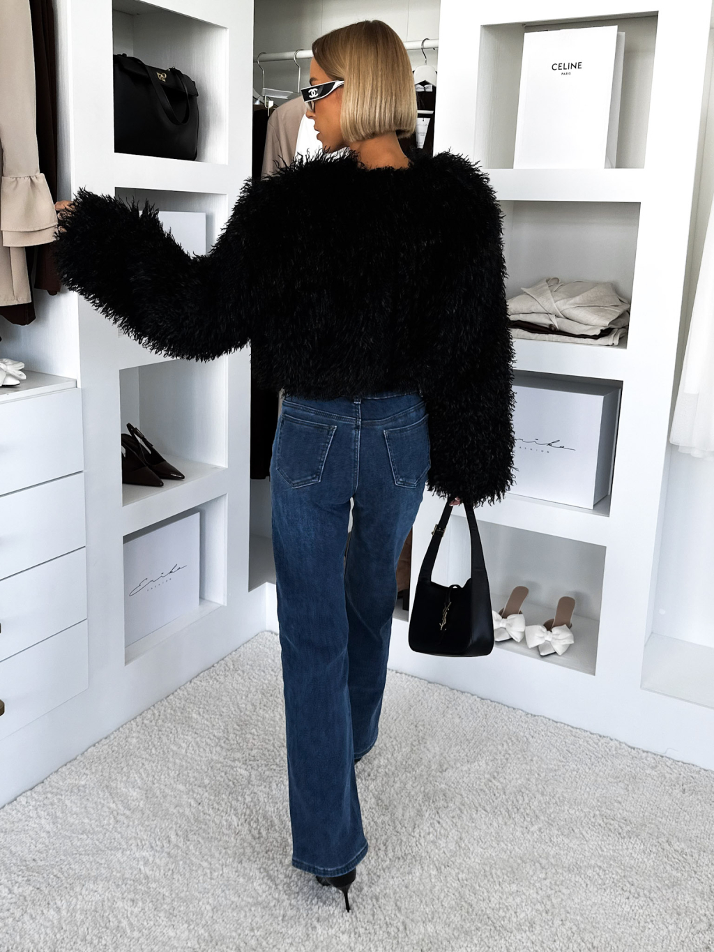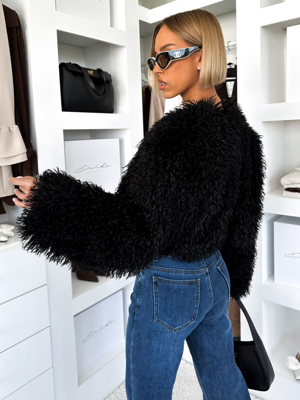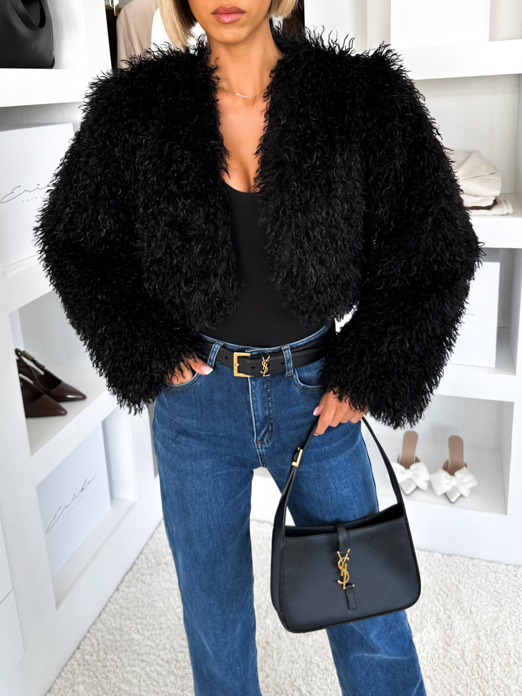 Čierny faux fur krátky kožušinový kabátik TUYEN