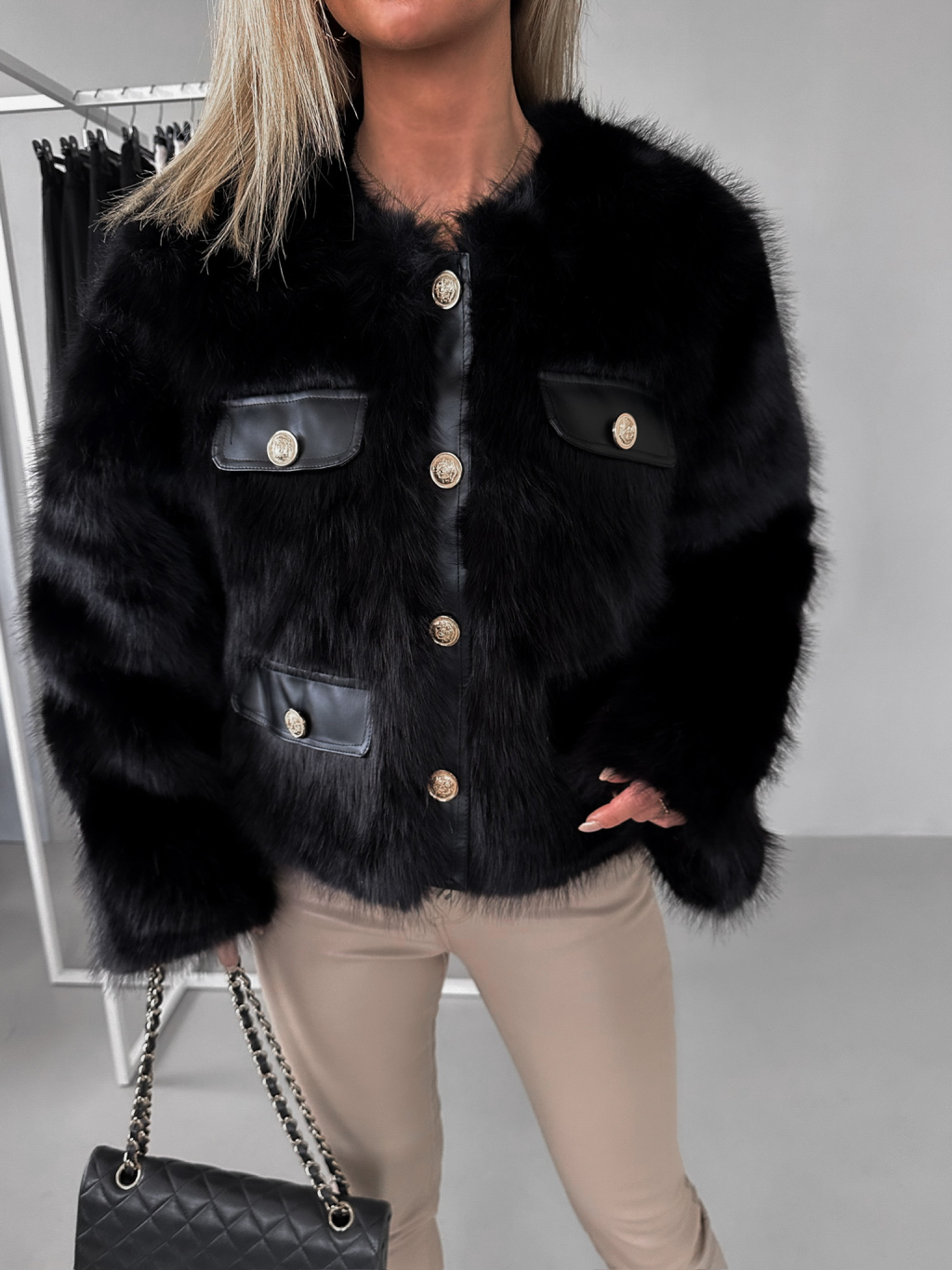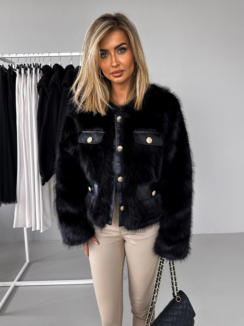 Čierny krátky faux fur kožušinový kabátik GRISELDA