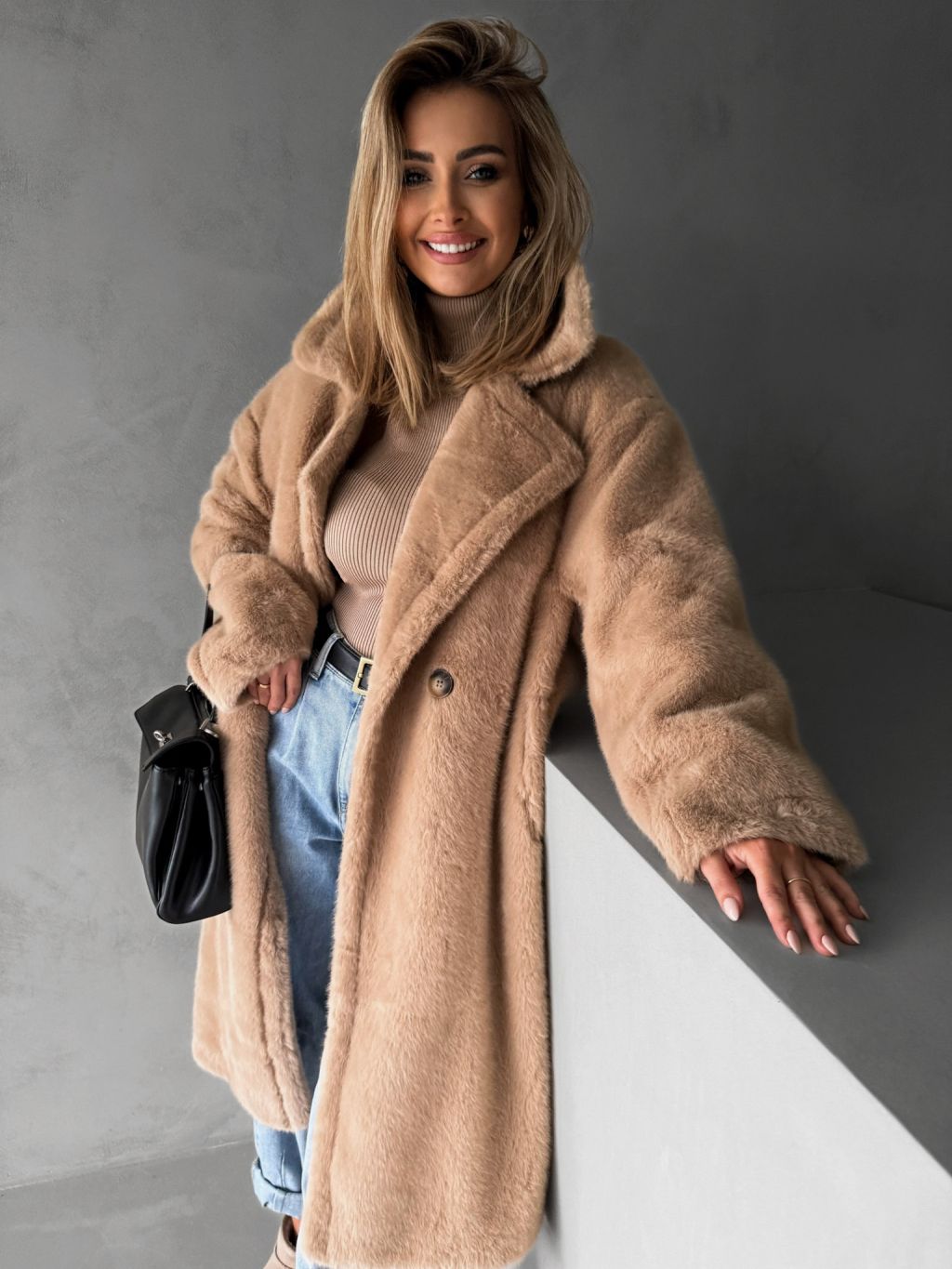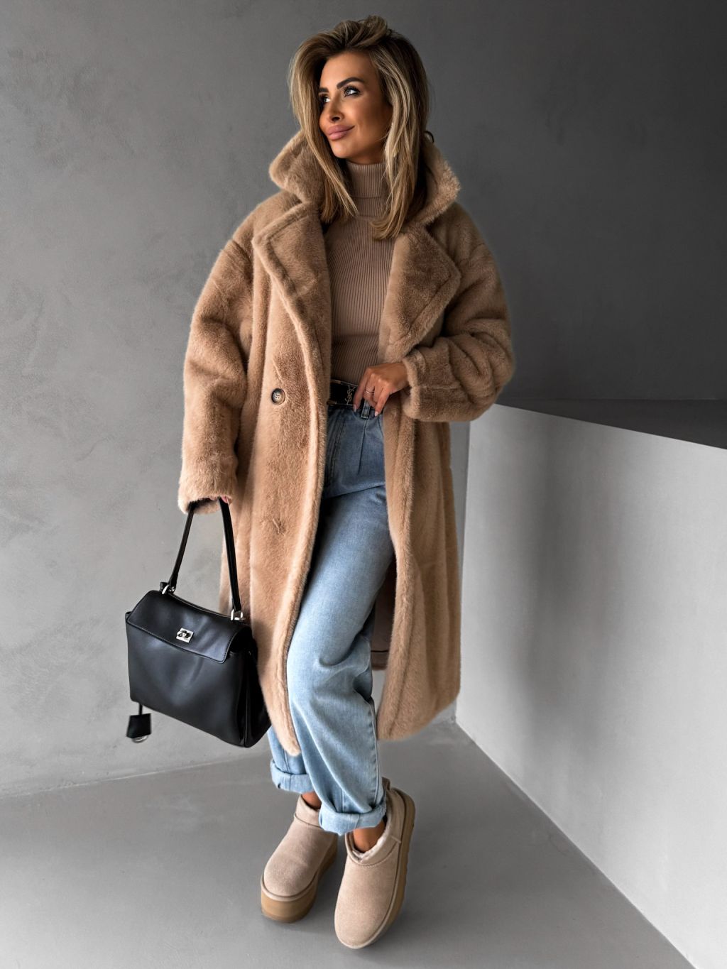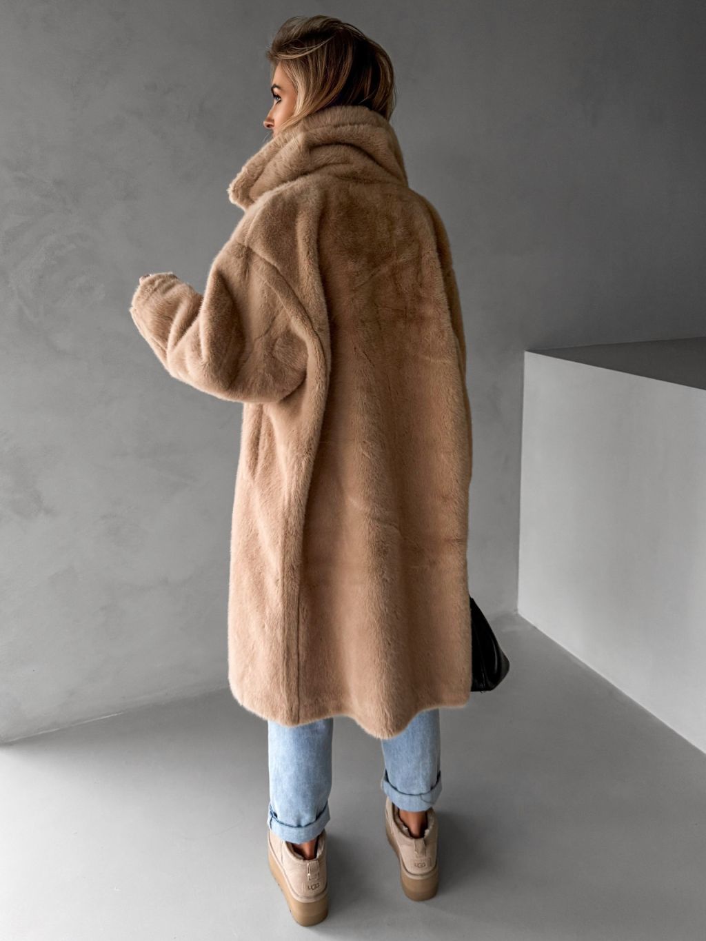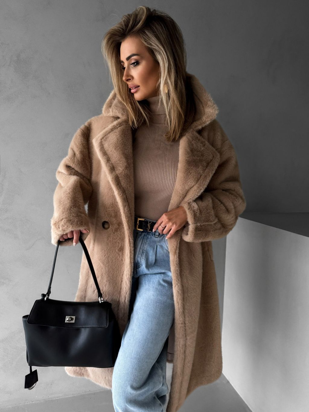 Hnedý dlhý teddy kabát ZOLTAR s golierom