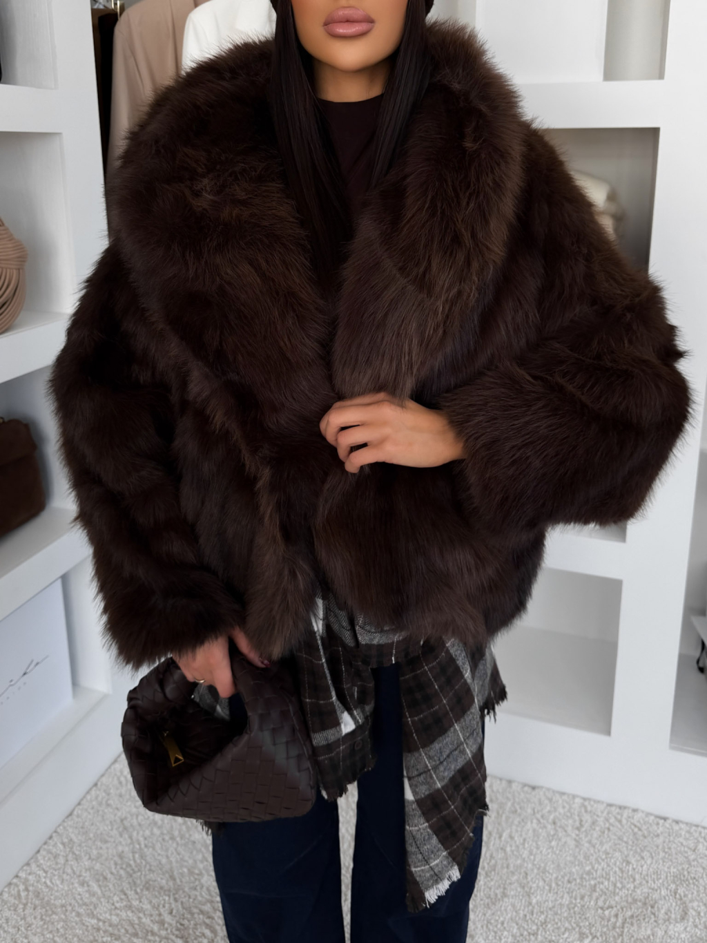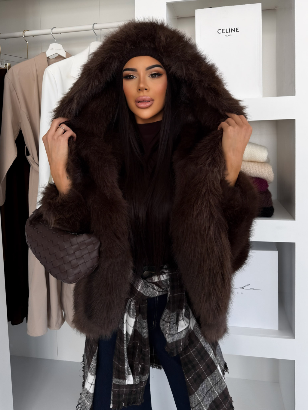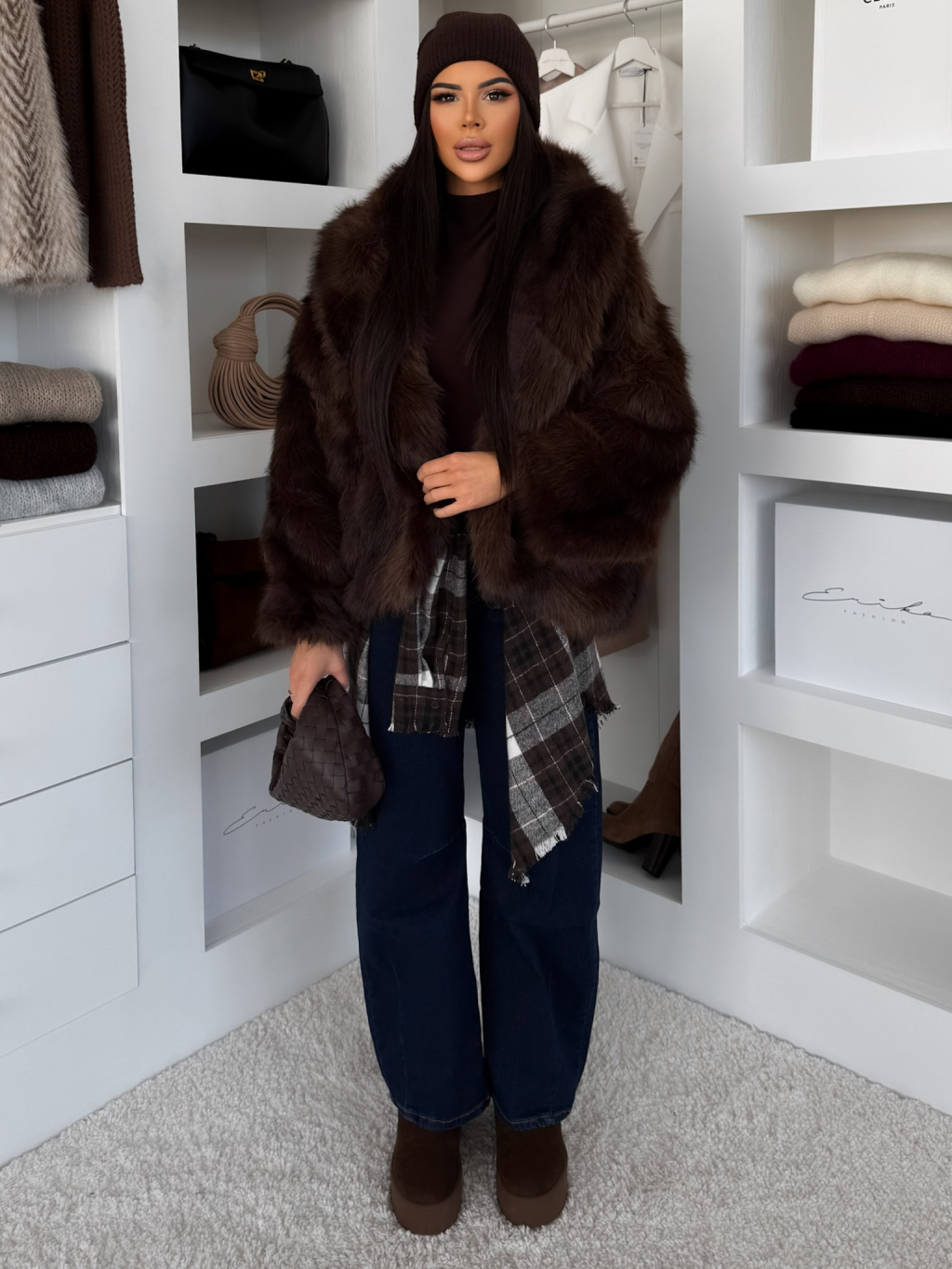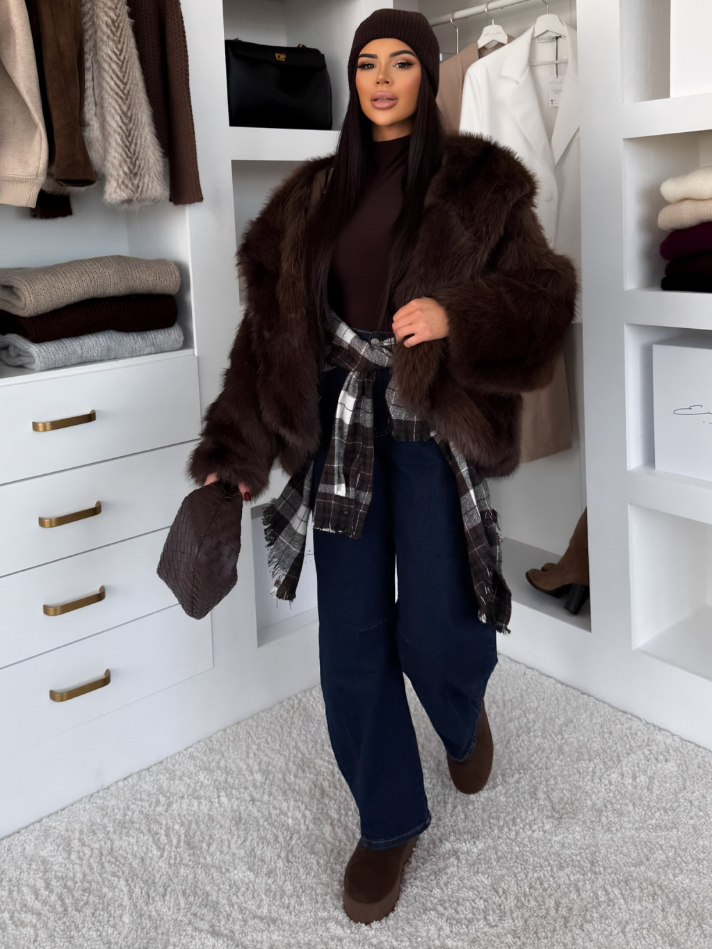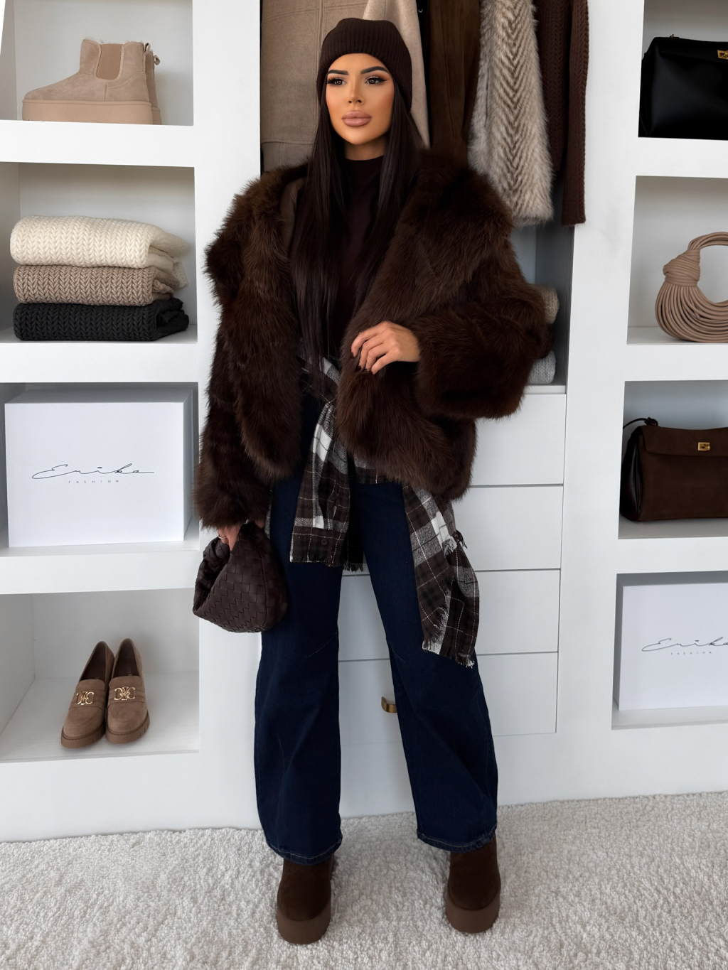 Hnedý faux fur kožušinový kabátik KIRELIA
