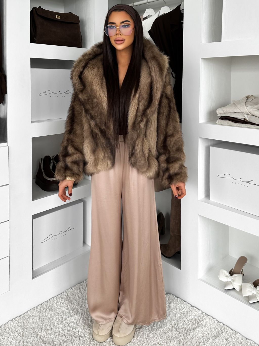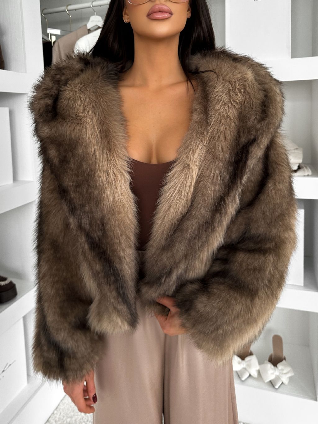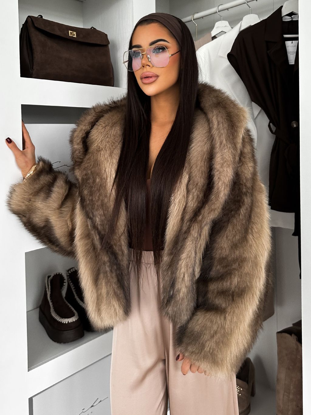 Hnedý faux fur krátky kožušinový kabátik ELUVION