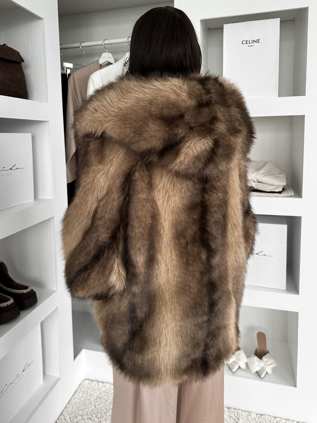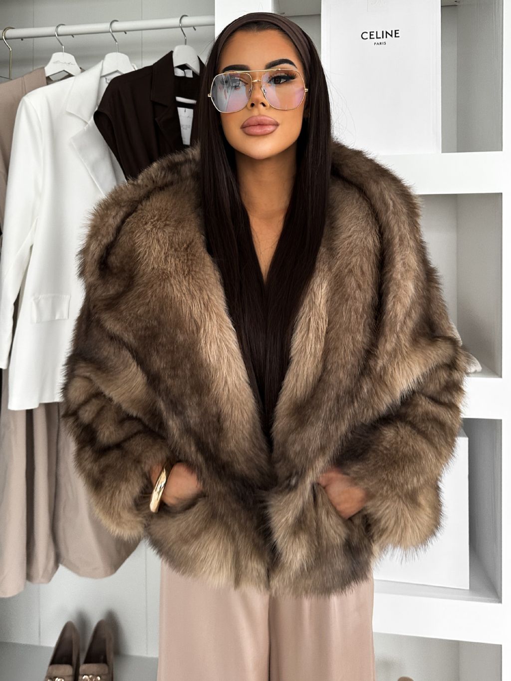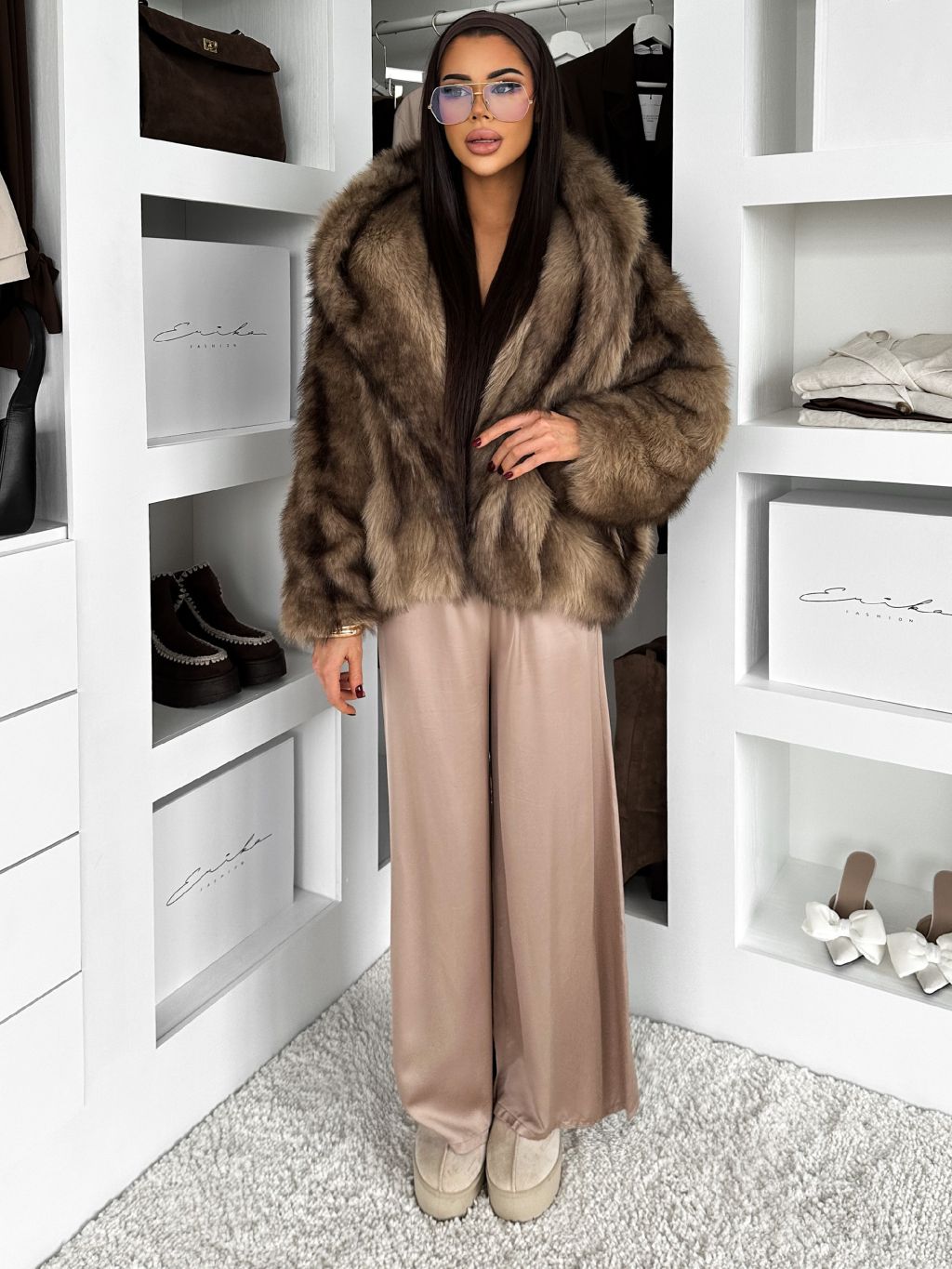Hnedý faux fur krátky kožušinový kabátik ELUVION