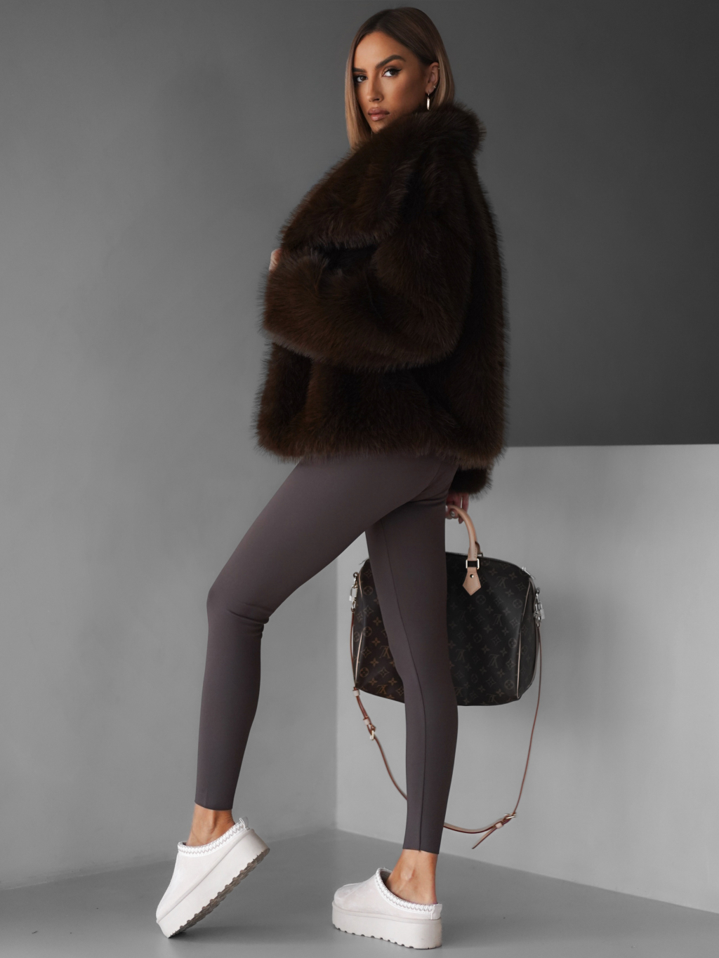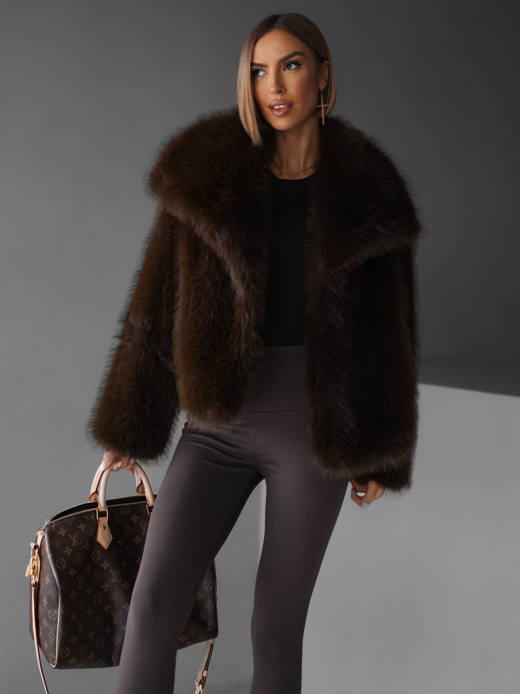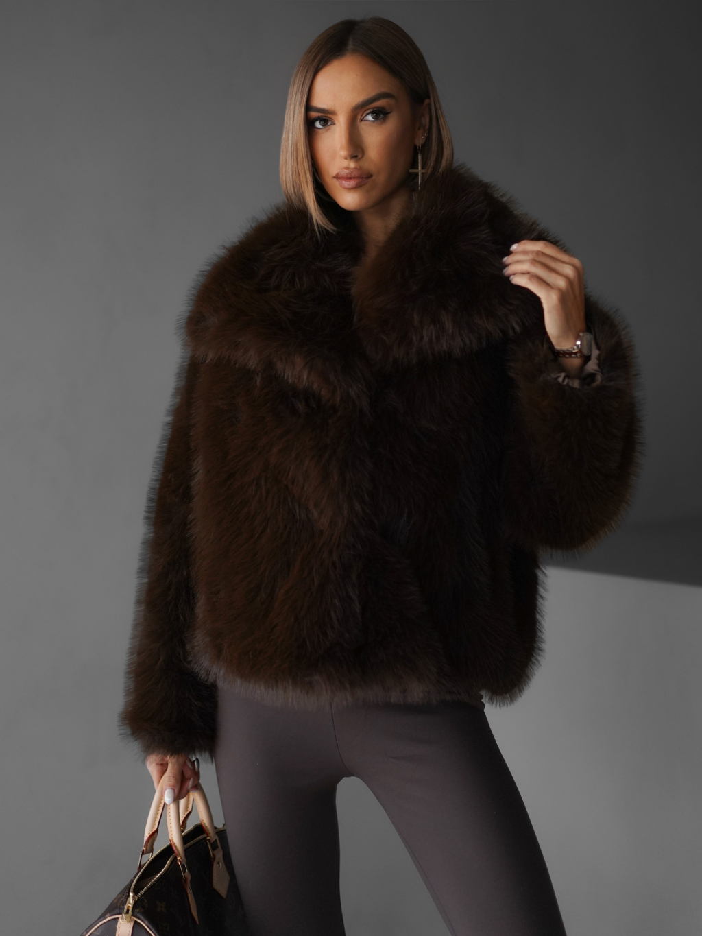 Hnedý krátky faux fur kožušinový kabátik HILARI