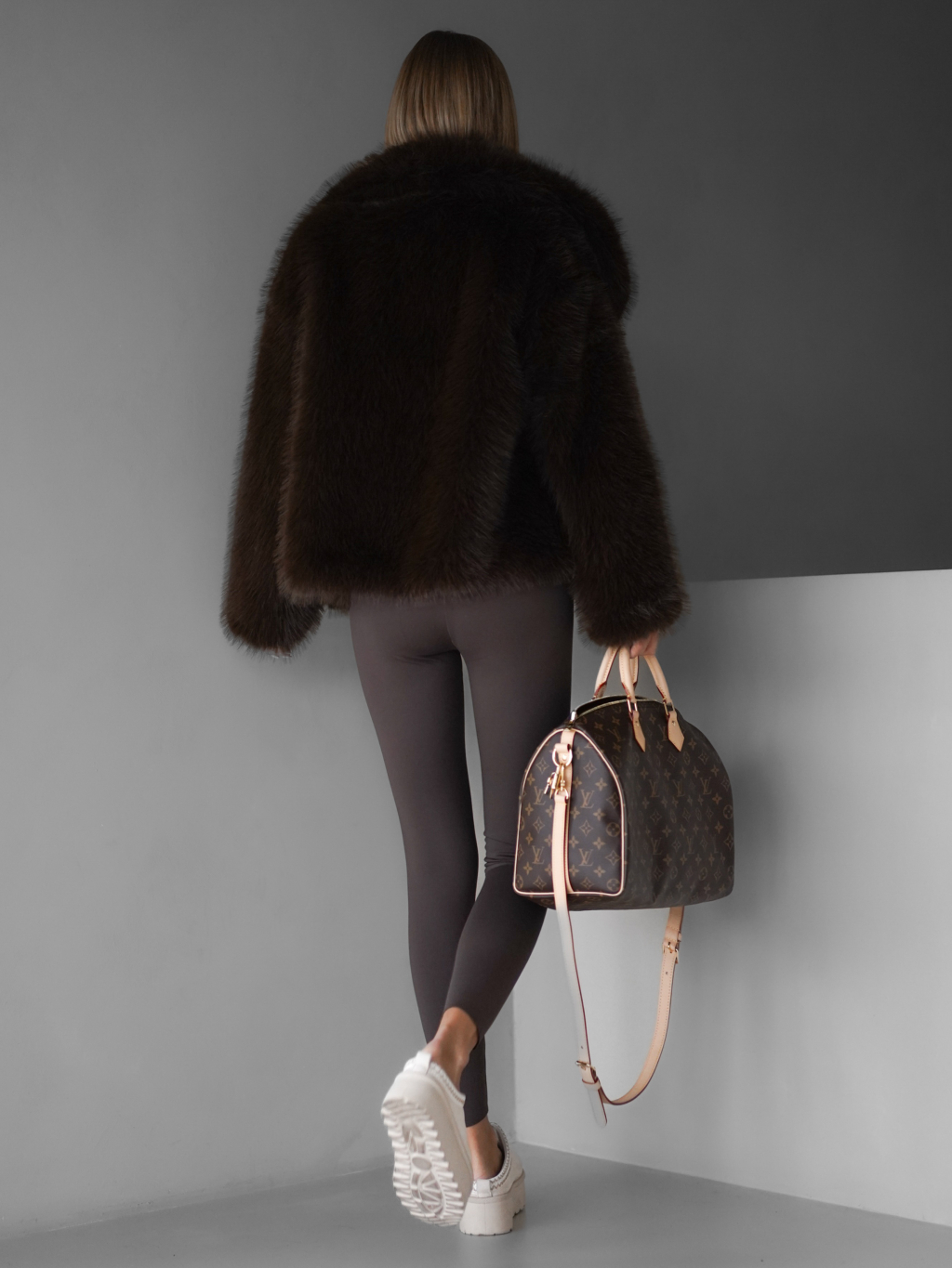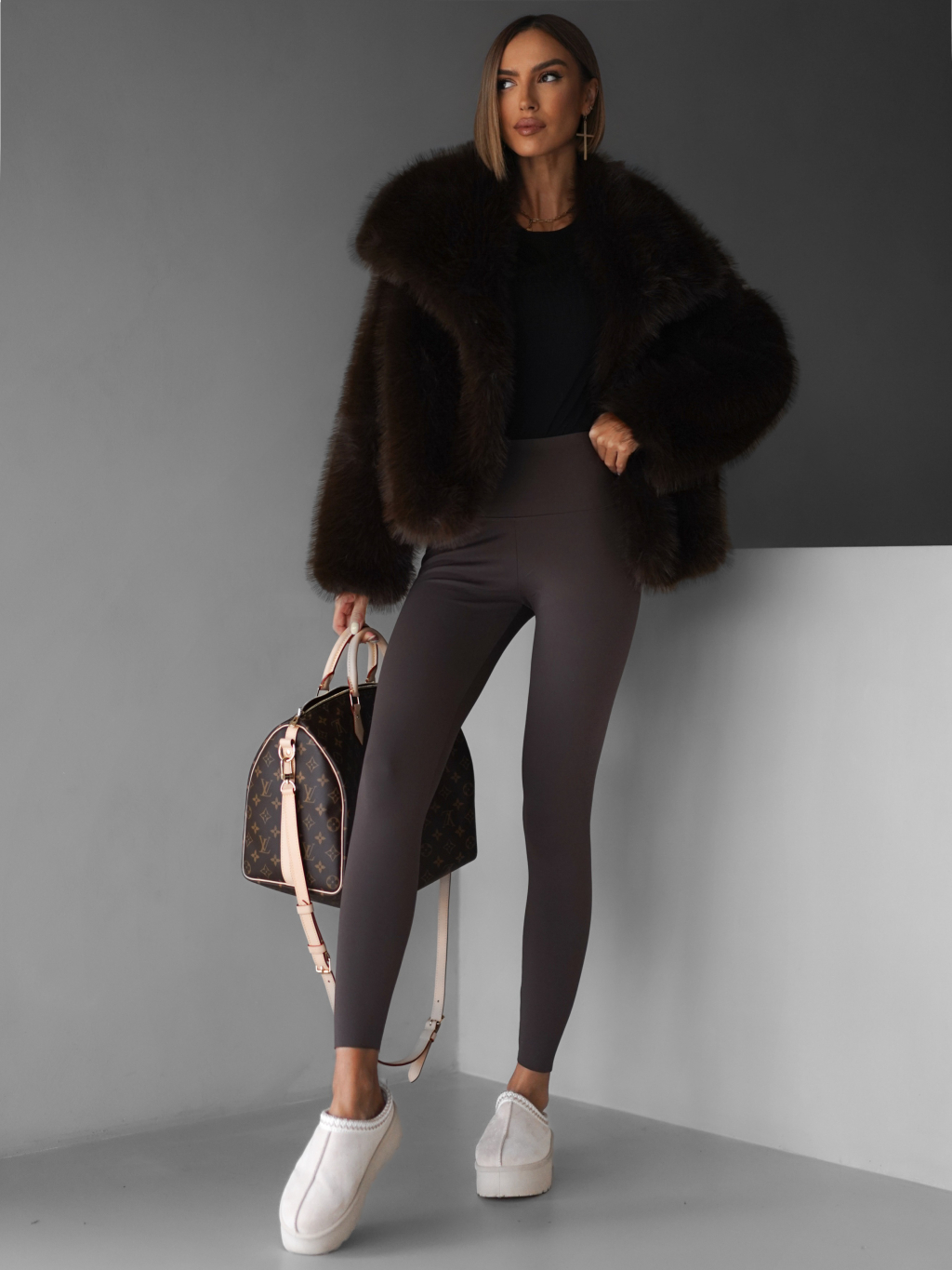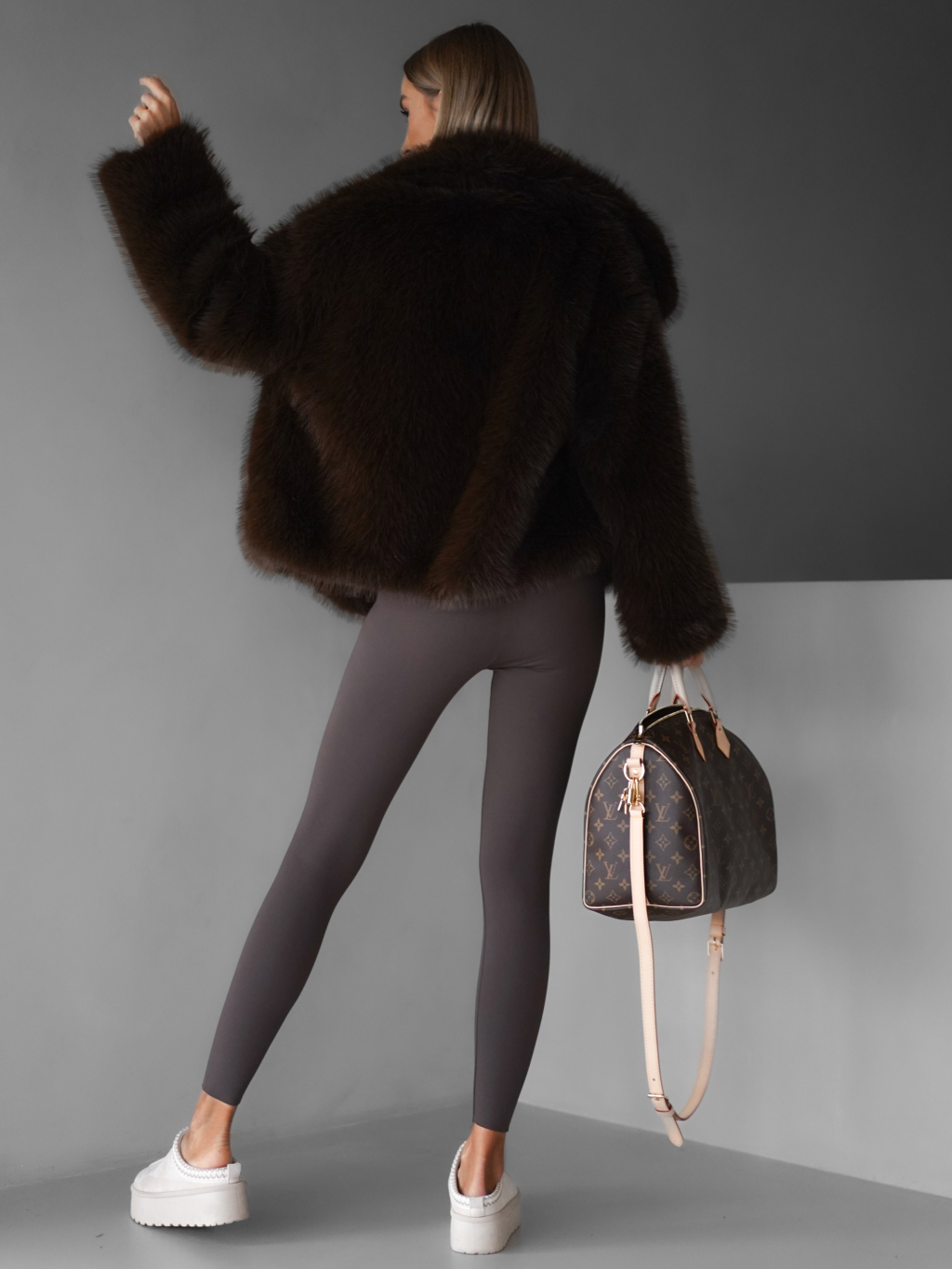 Hnedý krátky faux fur kožušinový kabátik HILARI