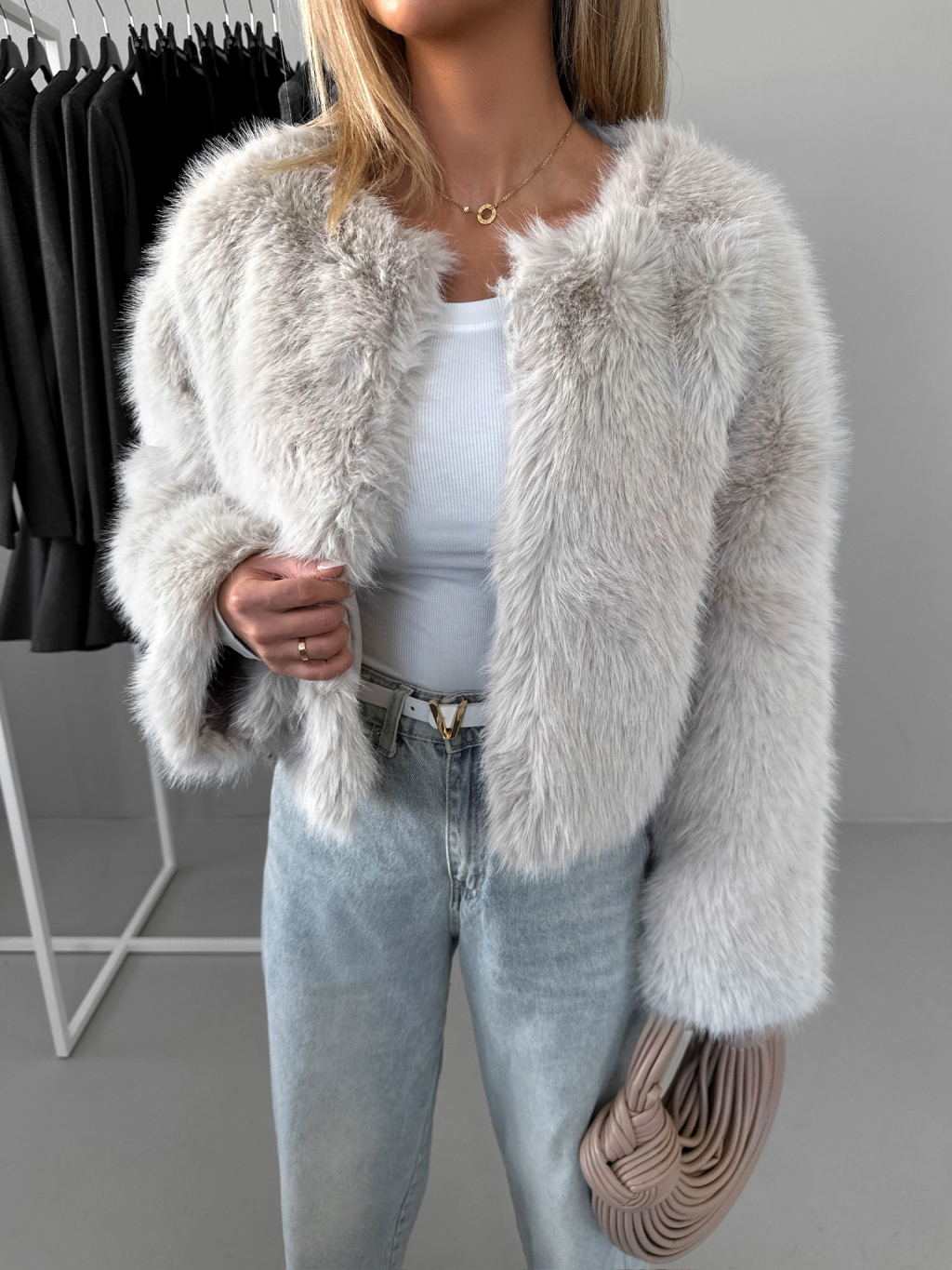 Krémový krátky faux fur kožušinový kabátik ANNELIT