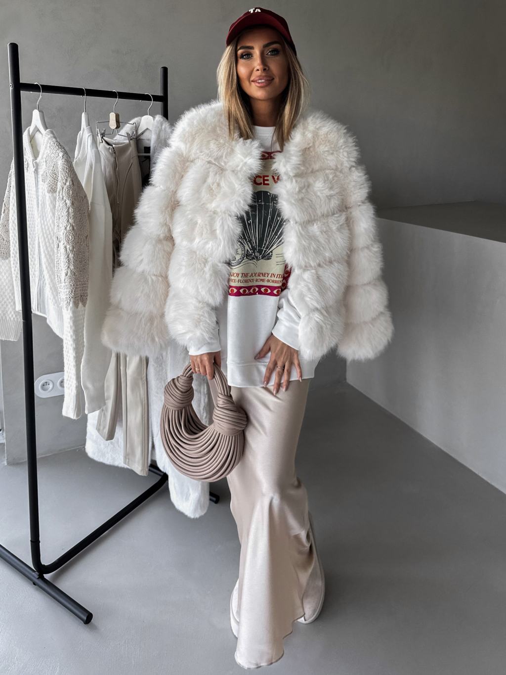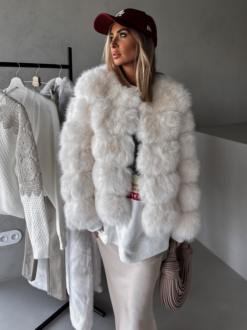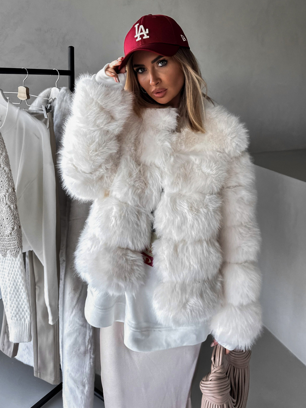 Krémový krátky faux fur kožušinový kabátik EVITA