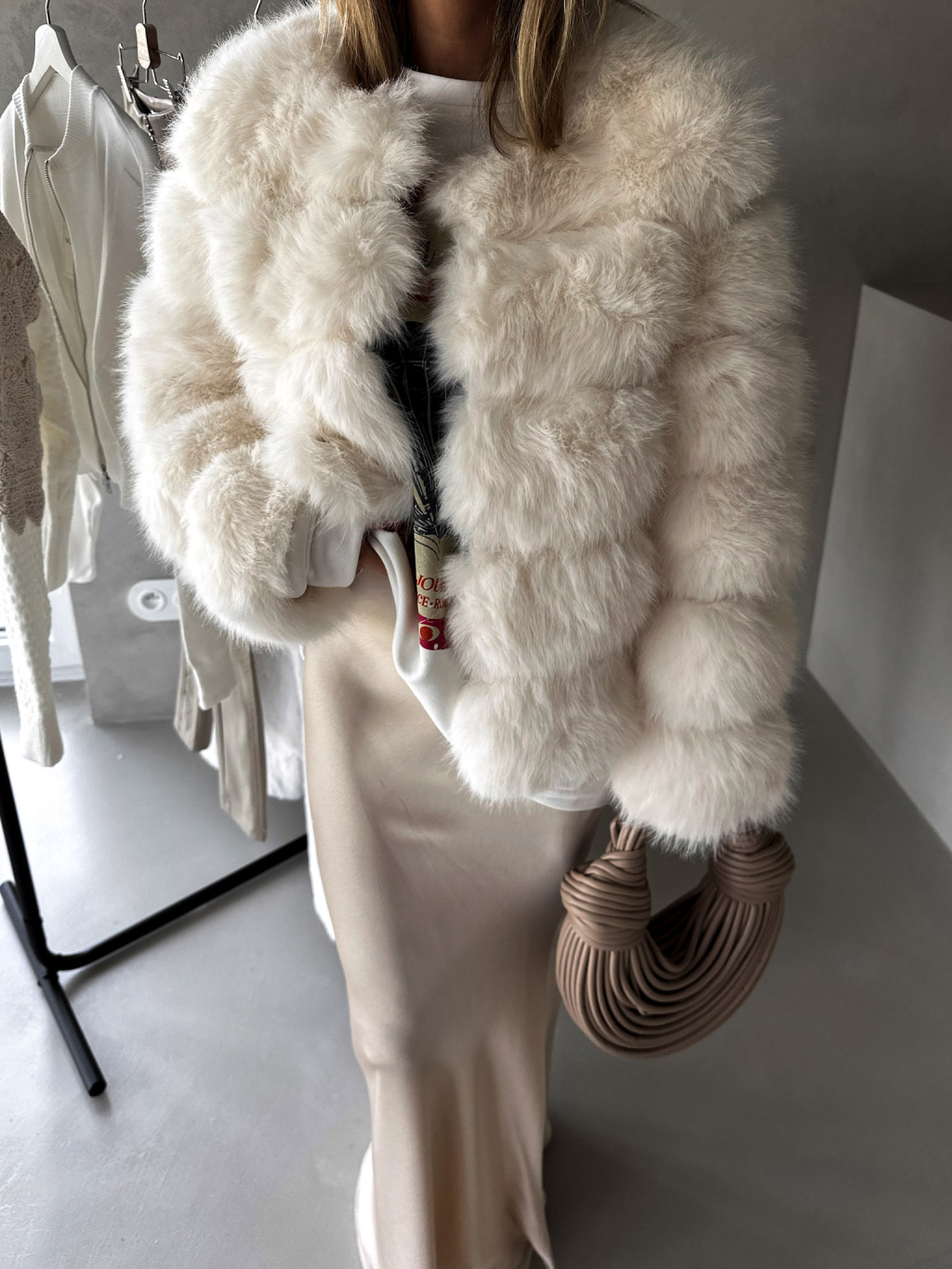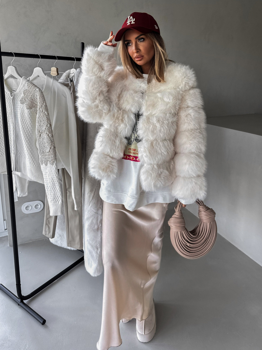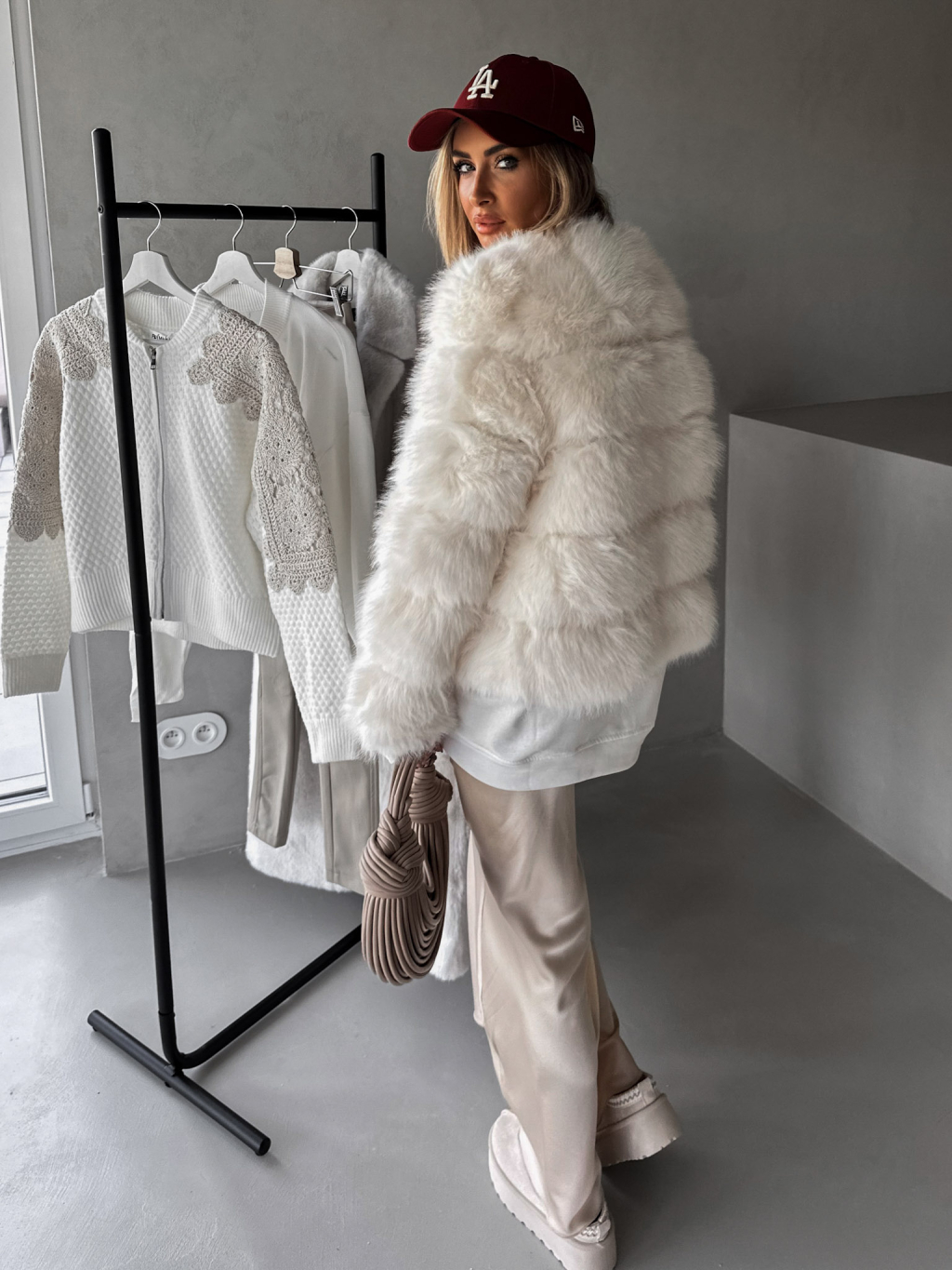 Krémový krátky faux fur kožušinový kabátik EVITA