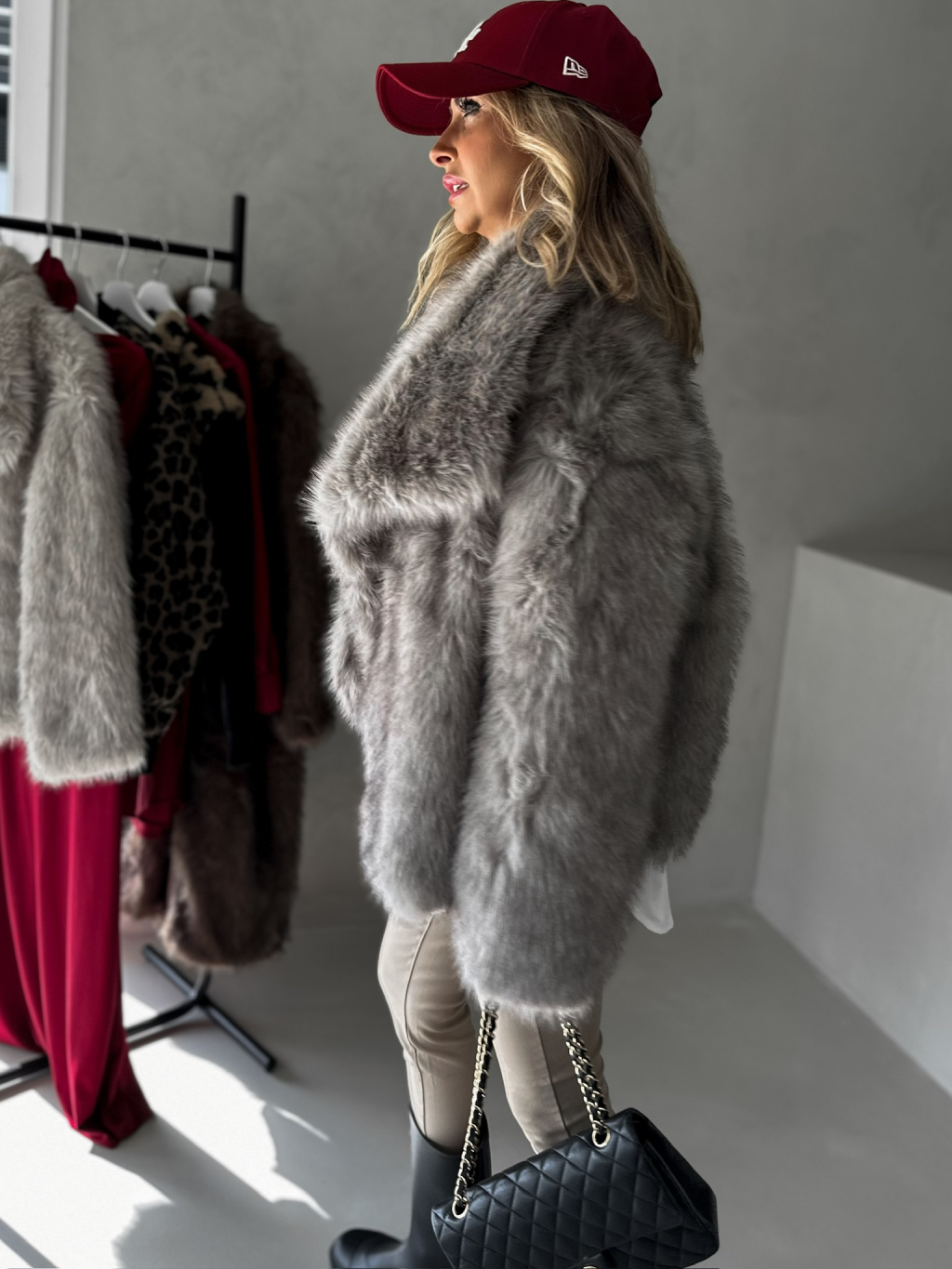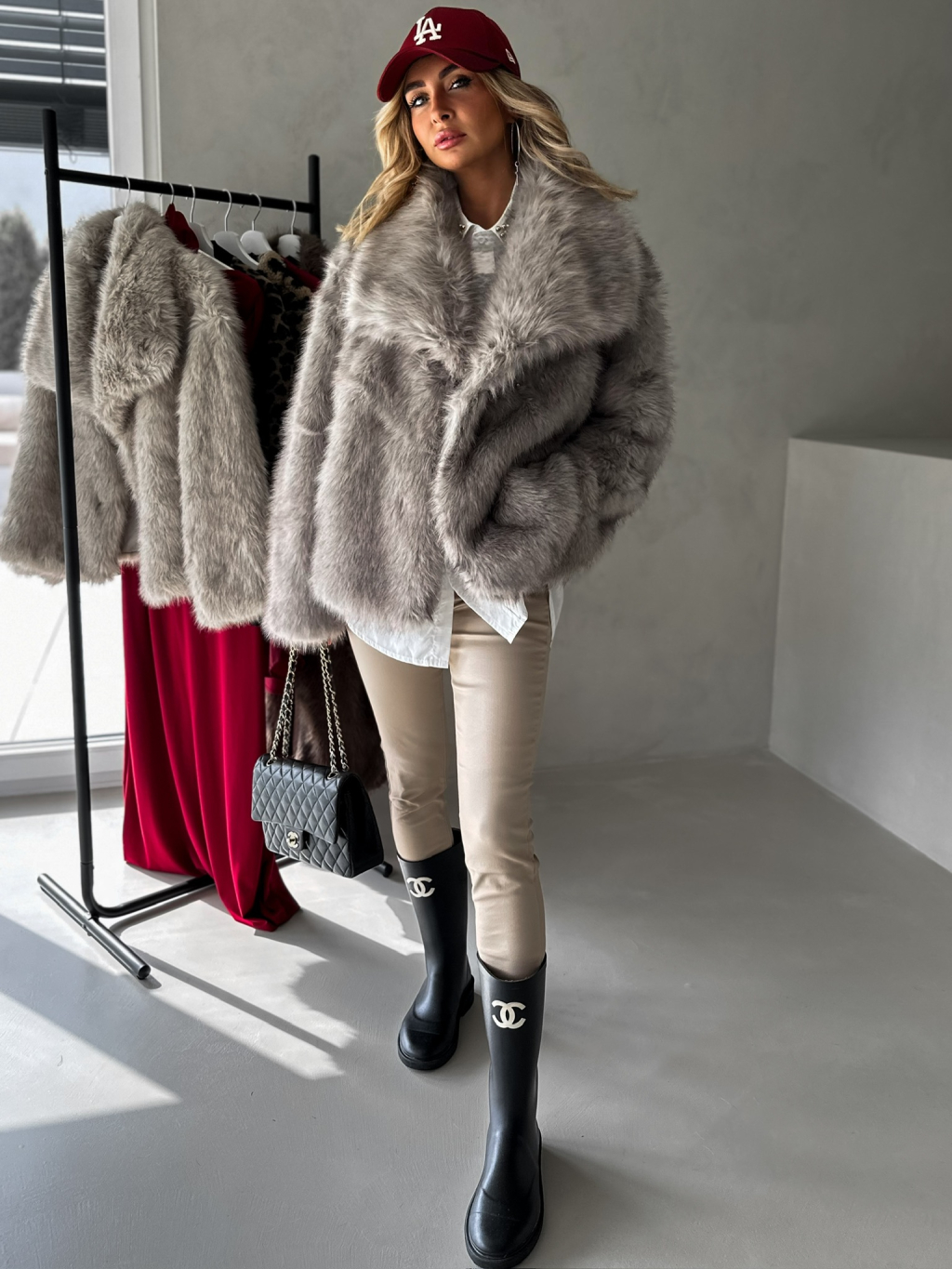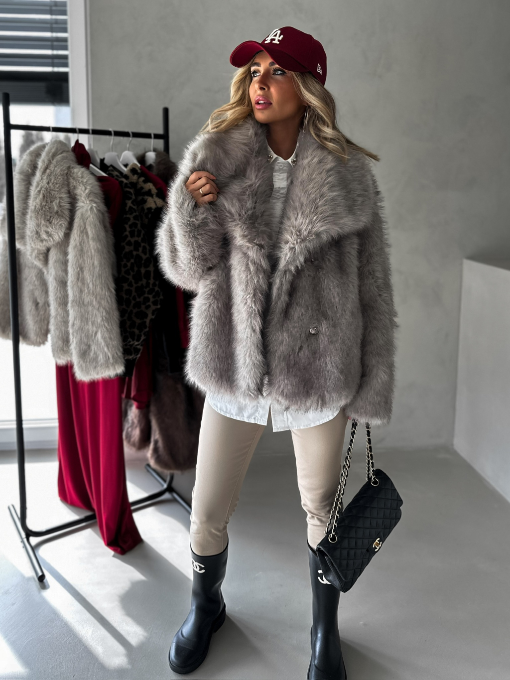 Krémový krátky faux fur kožušinový kabátik KIRIAK