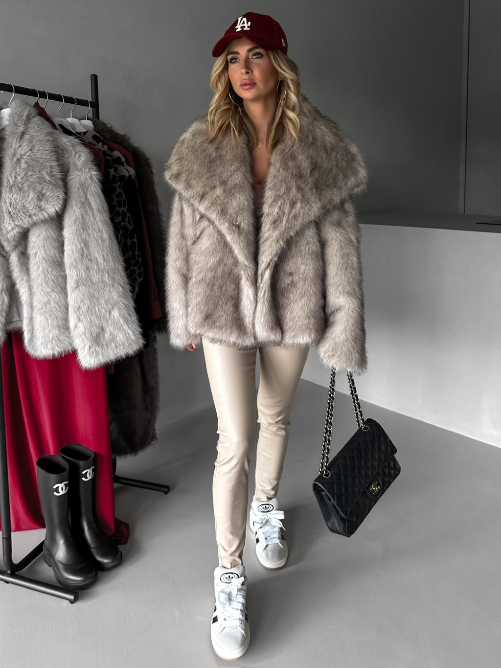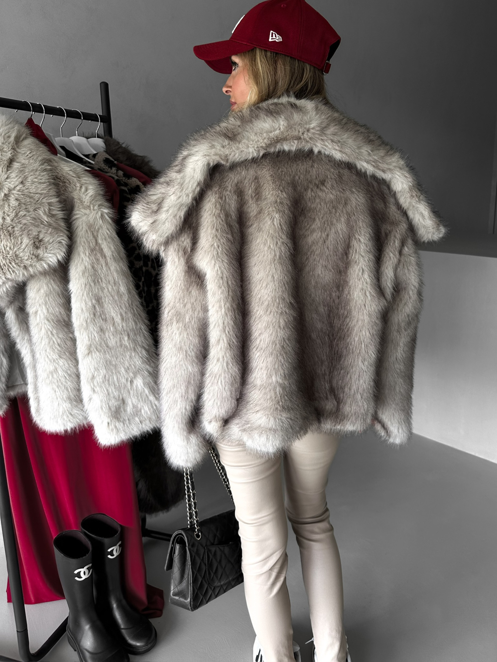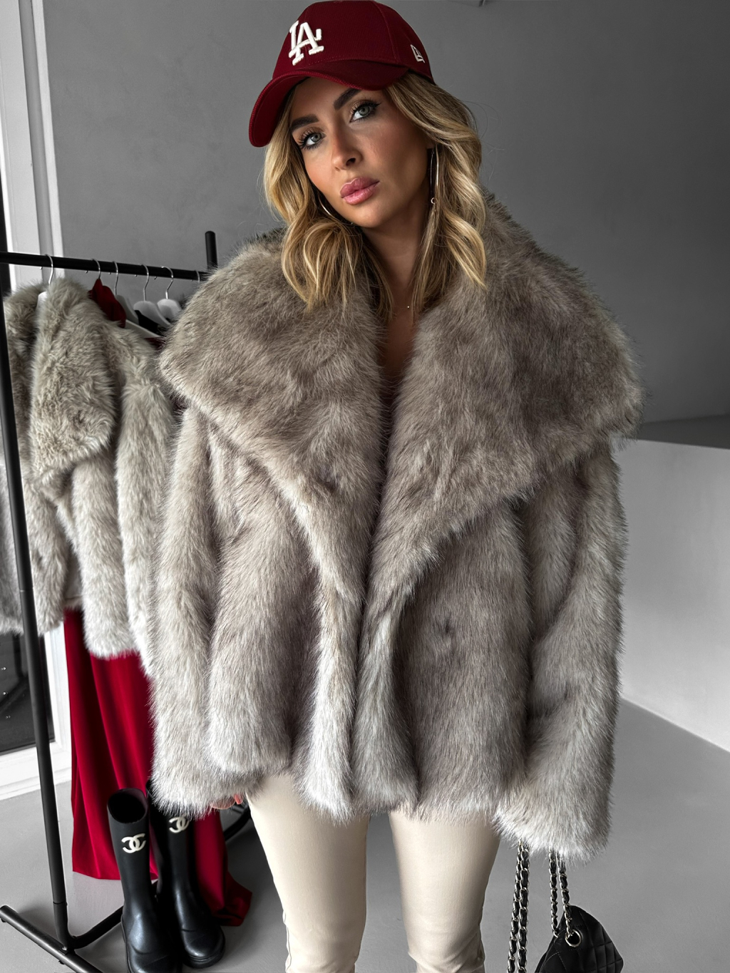 Šedý krátky faux fur kožušinový kabátik KIRIAK