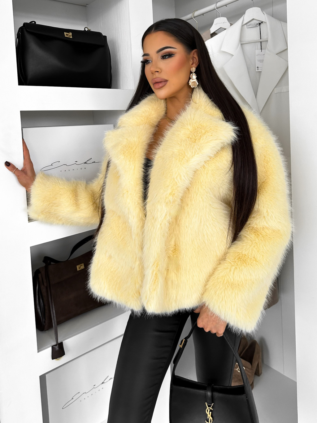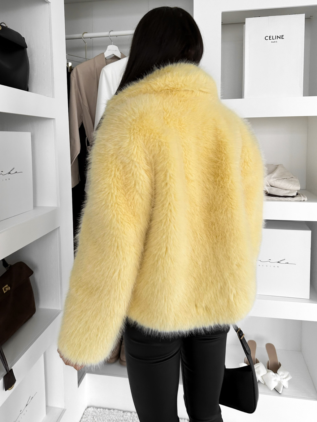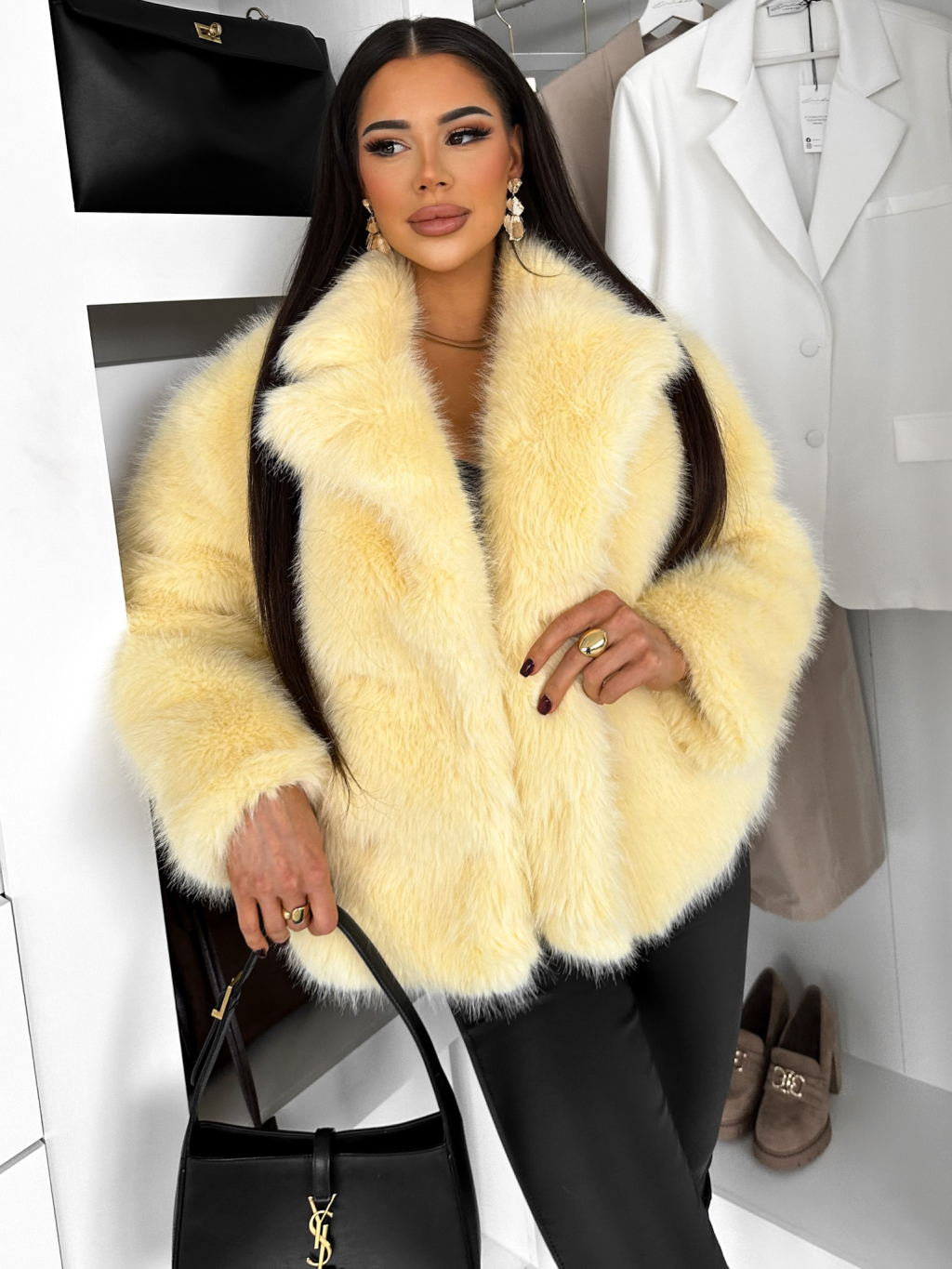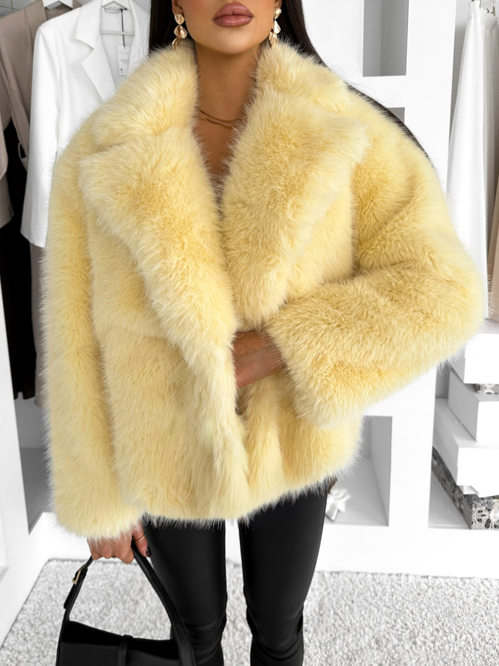 Žltý faux fur huňatý kožušinový kabátik MORVEN