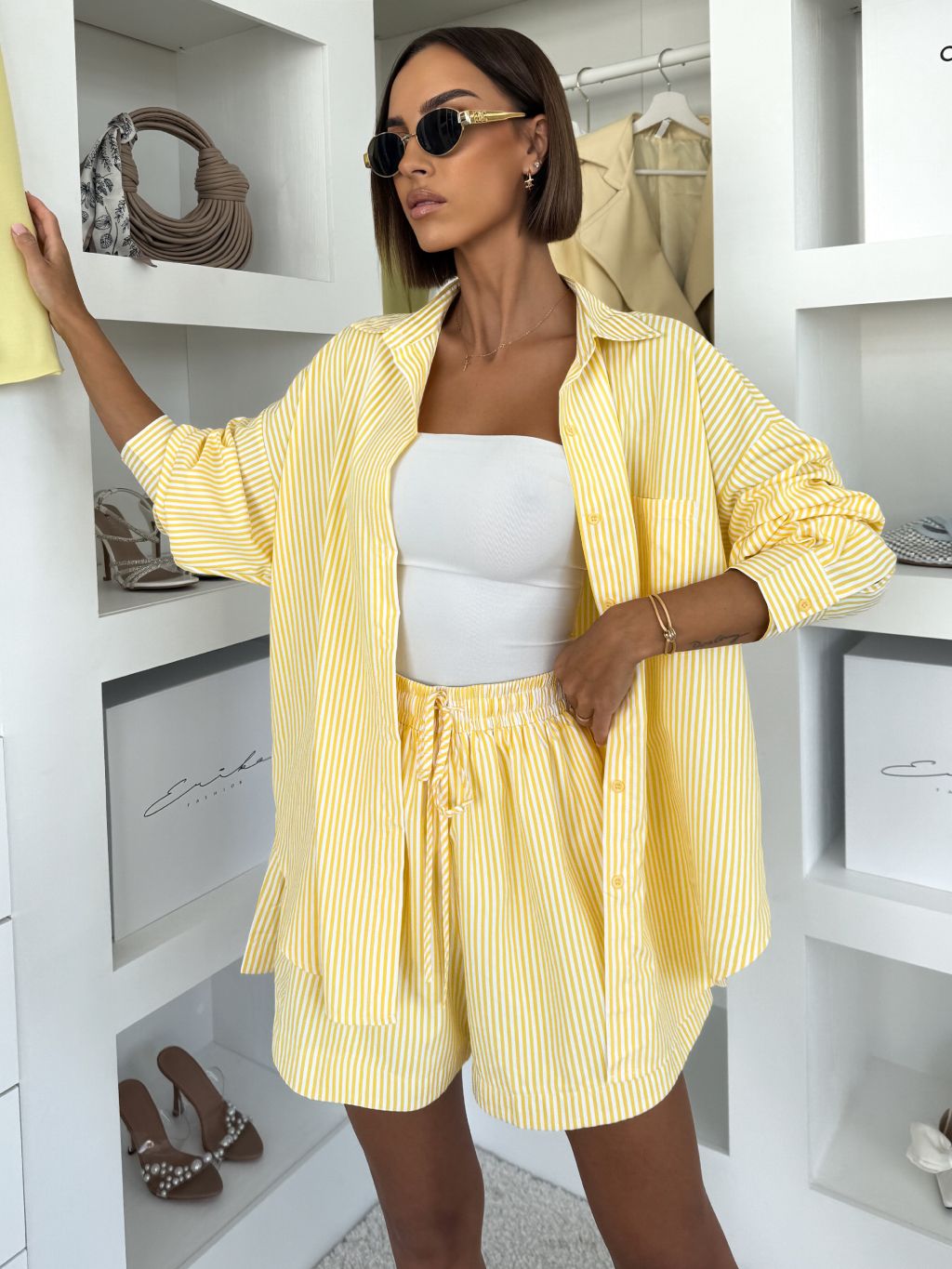 Žltý bavlnený pruhovaný kraťasový komplet JUNGLE