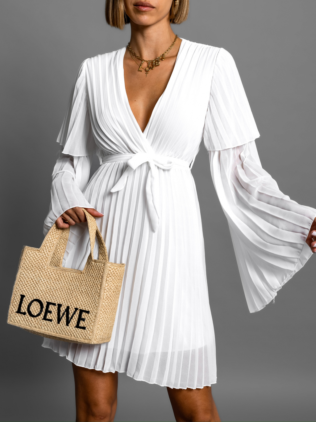 Biele plisované krátke šaty KAROLIN na zaväzovanie