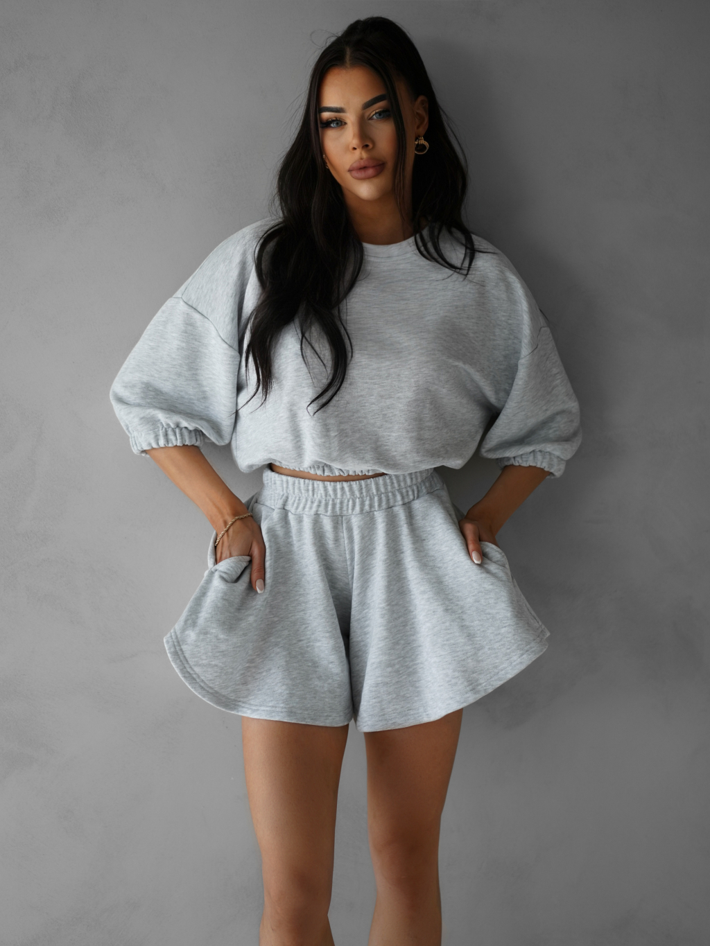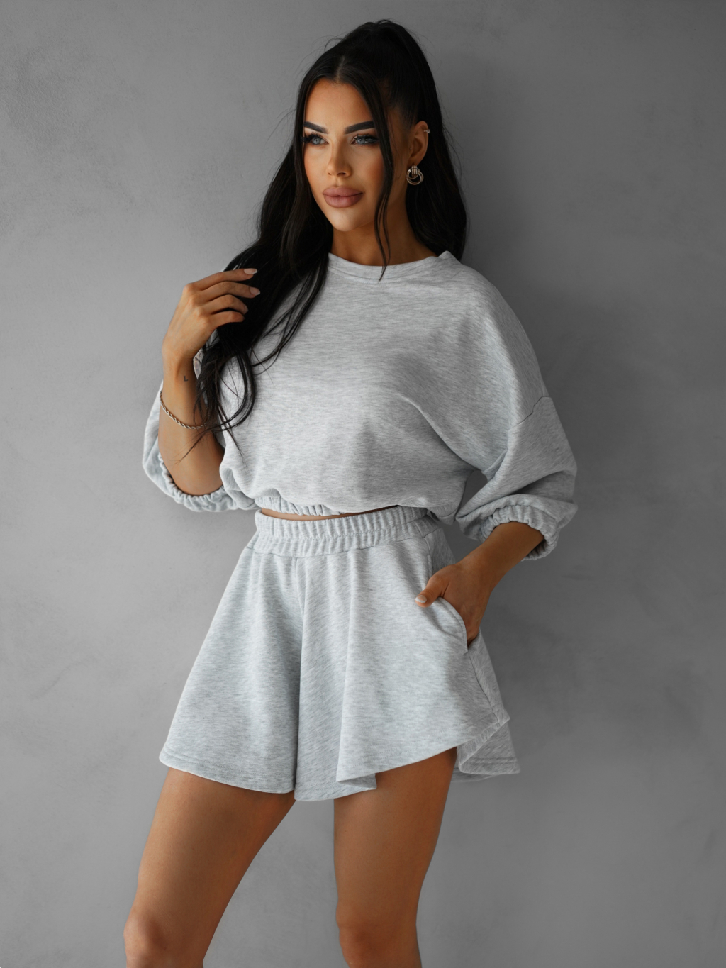 Šedý krátky bavlnený teplákový komplet KARALEN