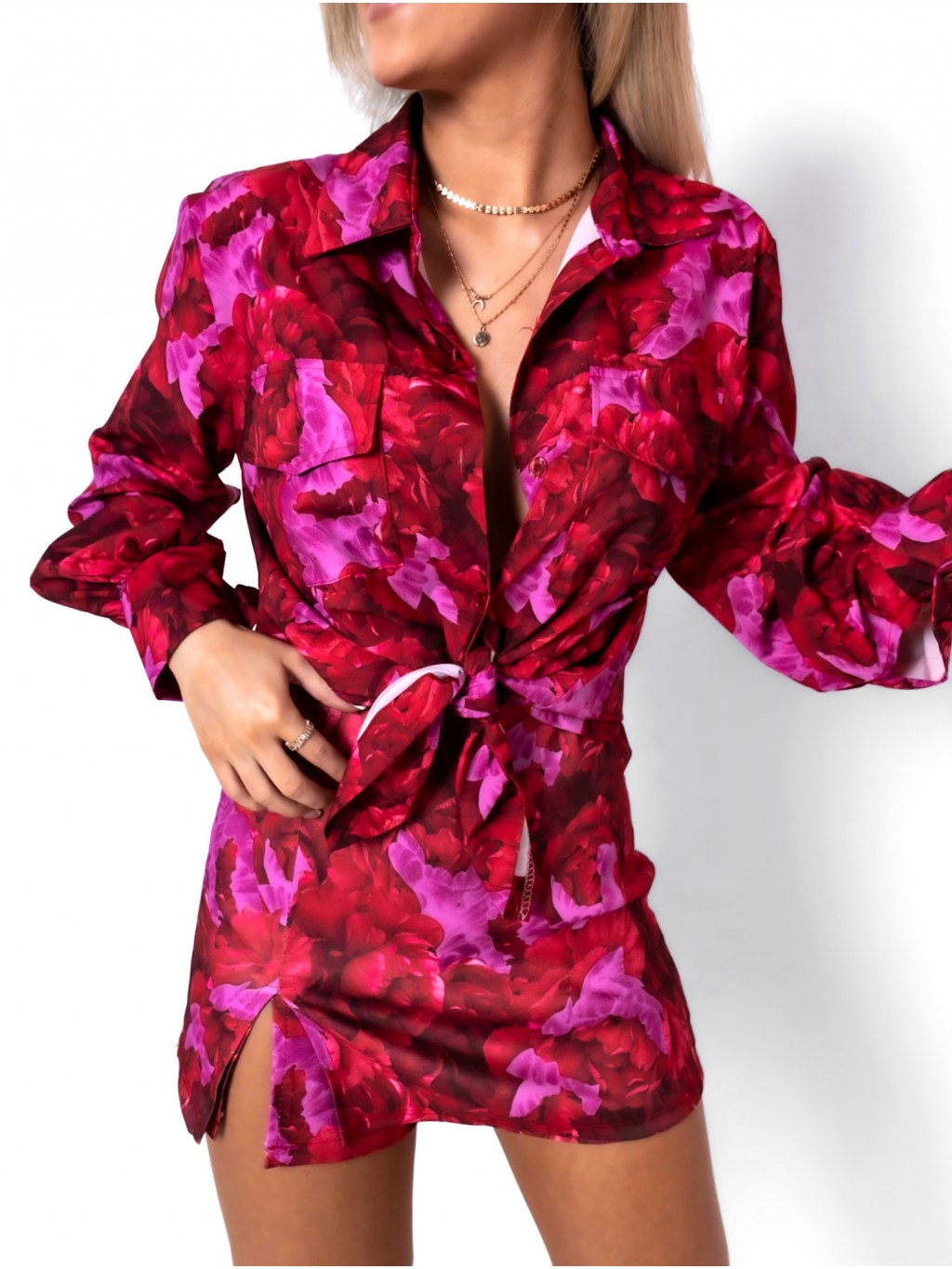 Červený dvojdielny komplet BOWIEE s kvetinovým vzorom