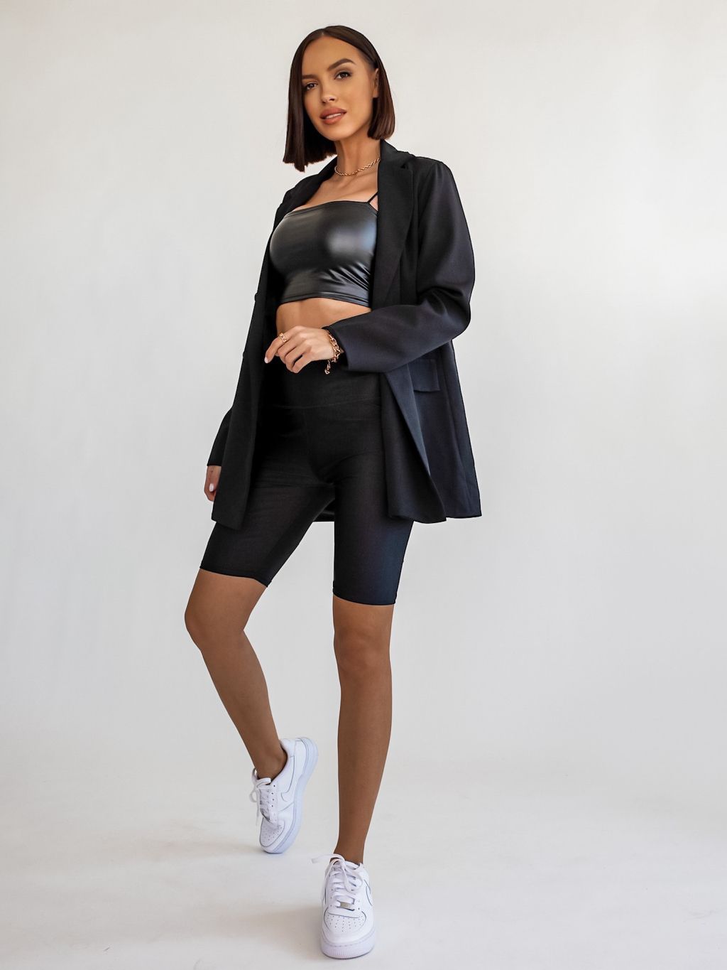 Čierne lesklé krátke legíny CANDOR