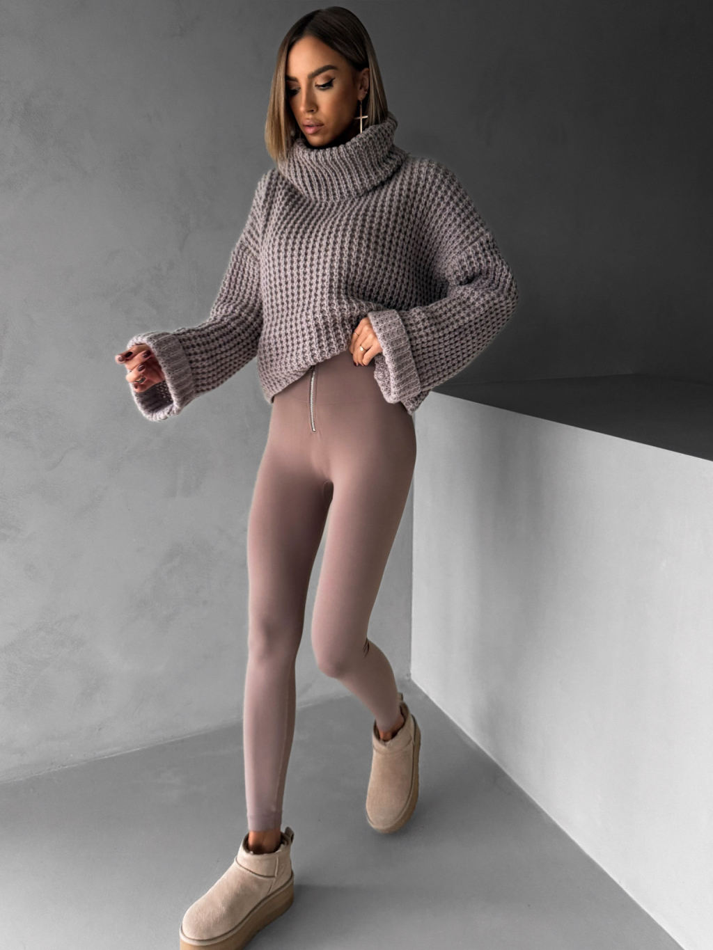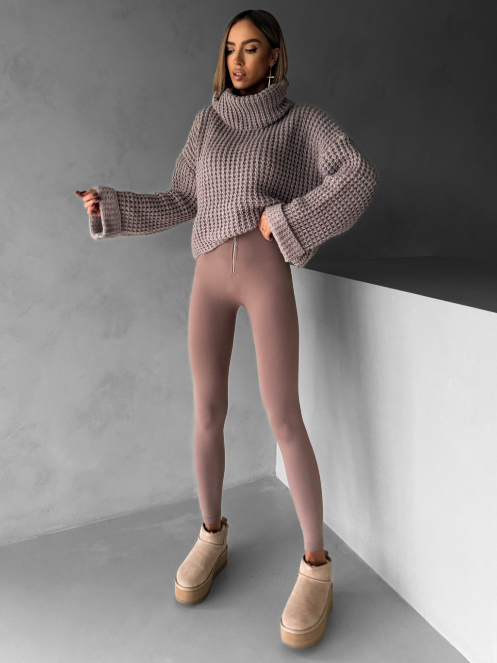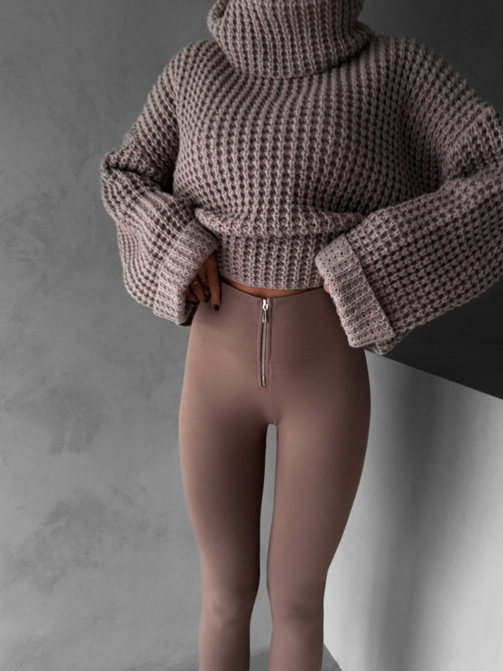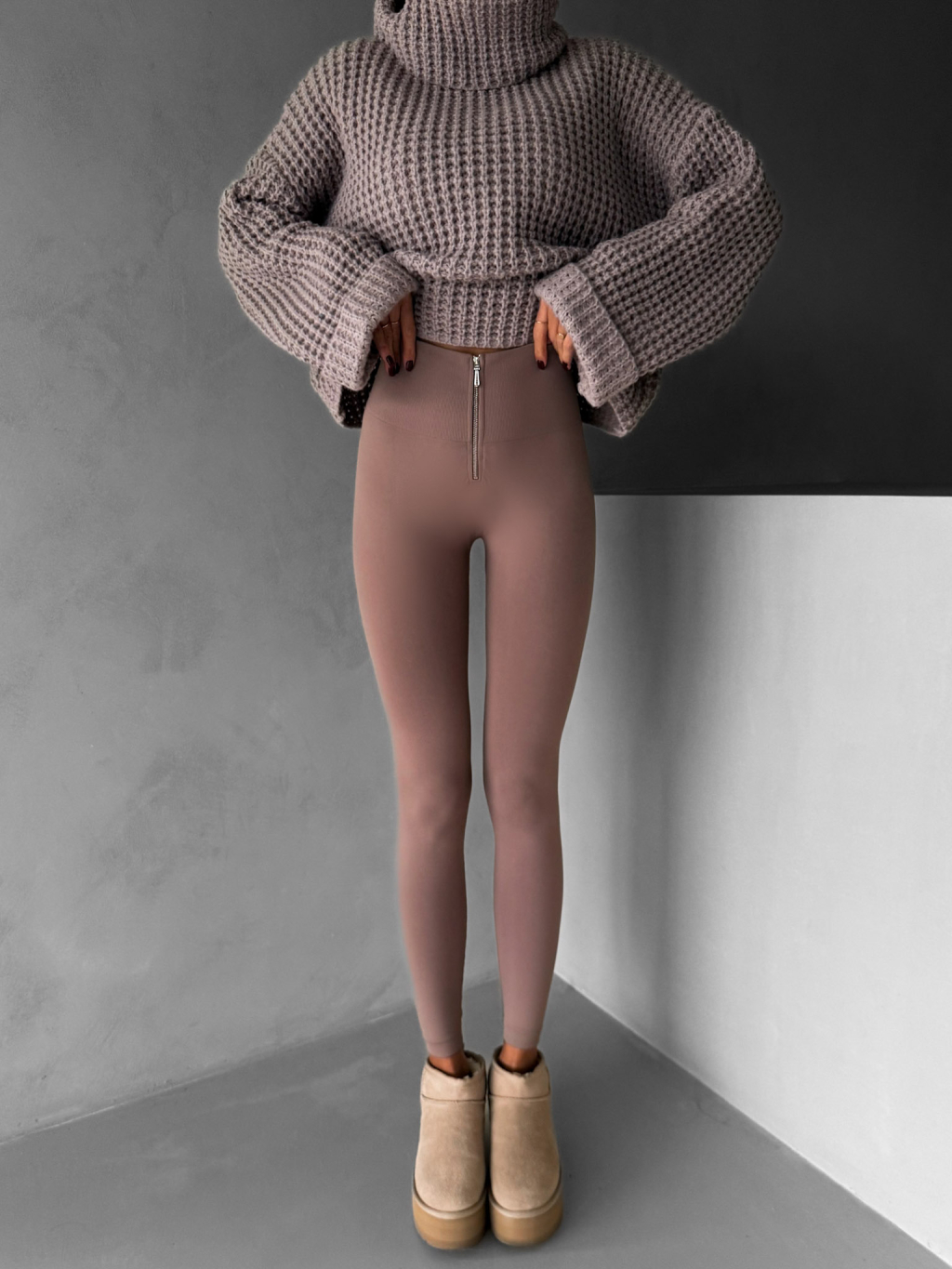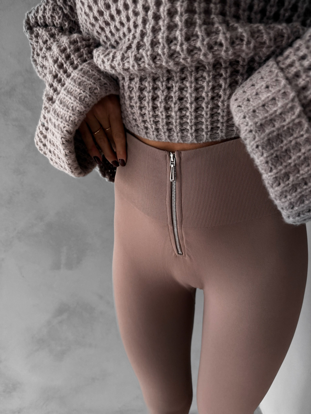 Hnedé elastické legíny CSILAG so zipsom