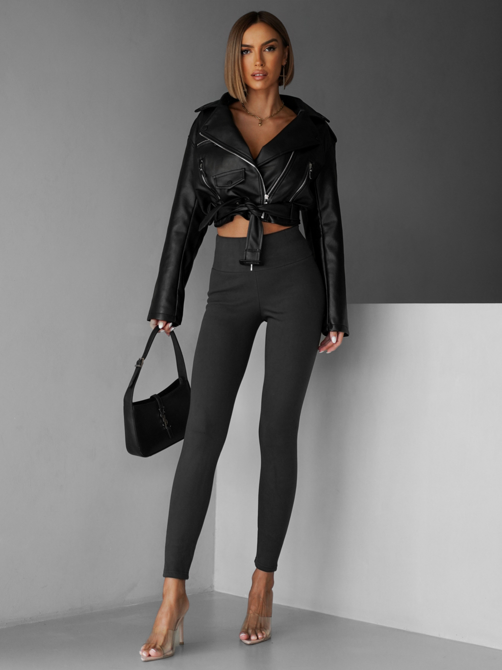 Šedé elastické zateplené legíny SOLAN