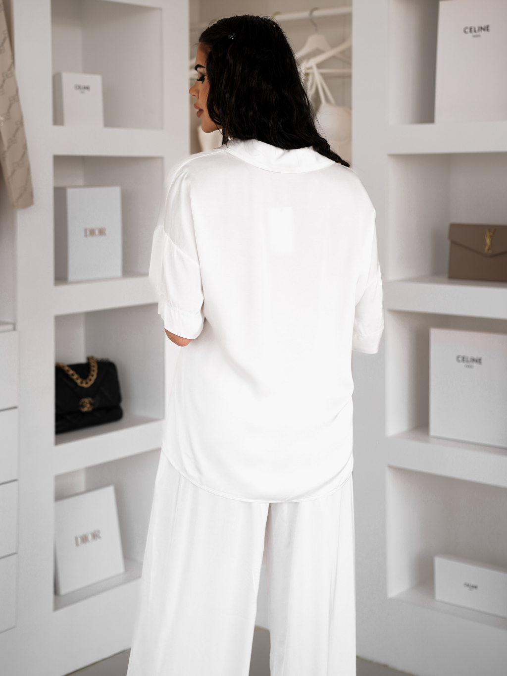 Biela saténová letná košeľa JOLENE s krátkym rukávom