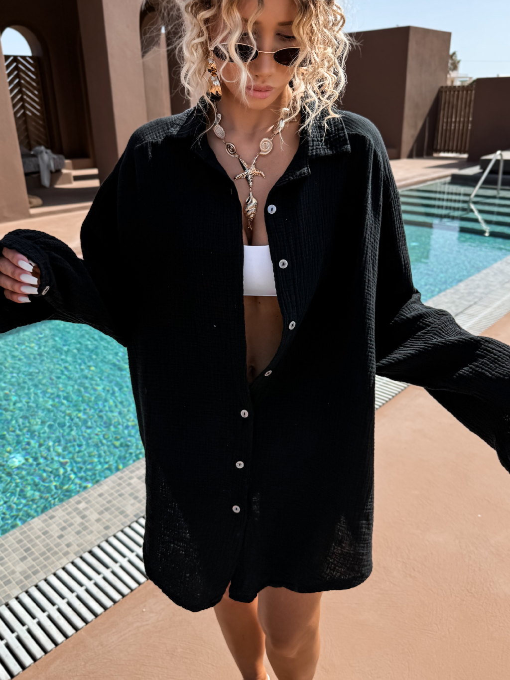 Čierna mušelínová oversize dlhá košeľa MEKATHY