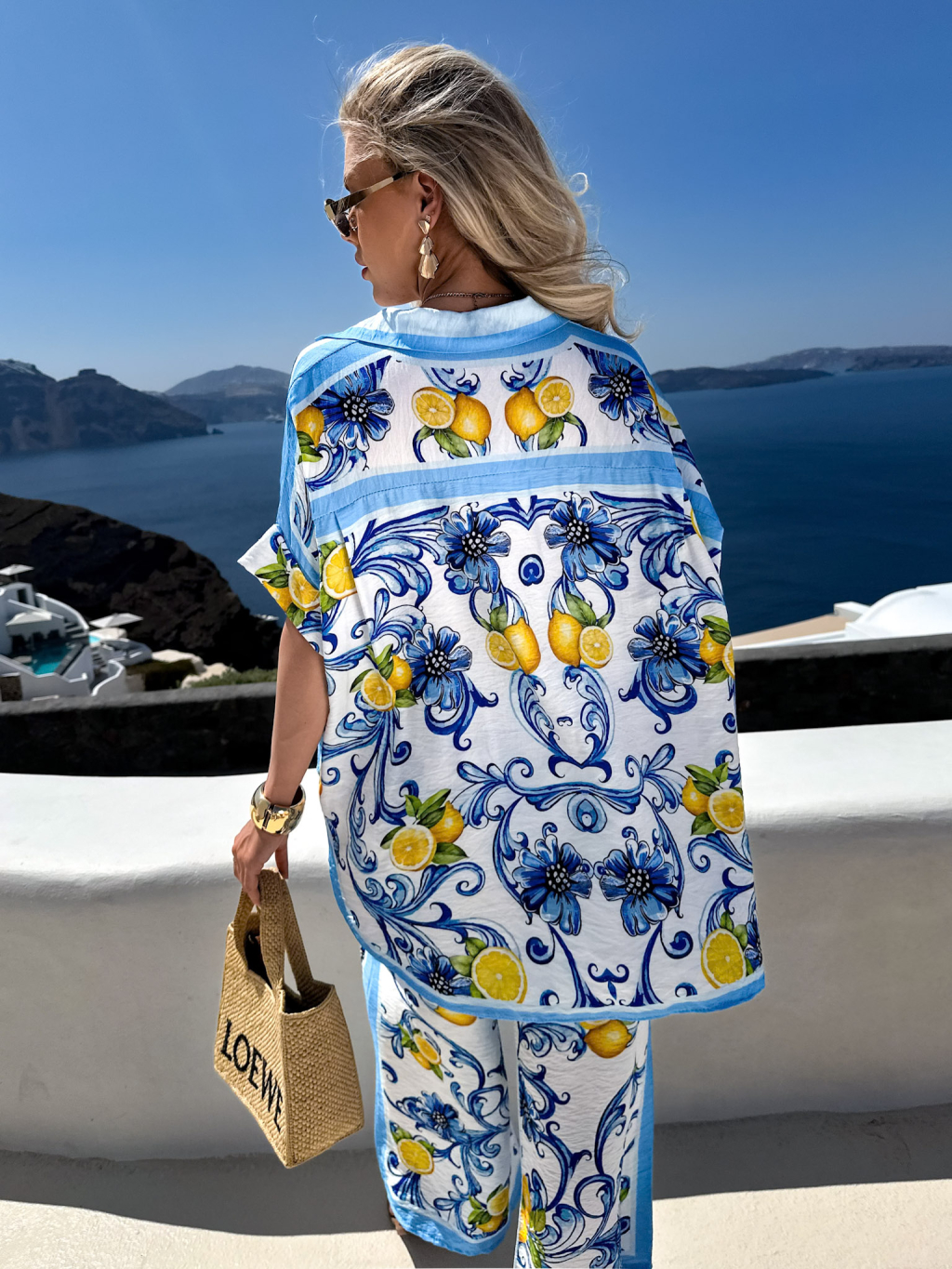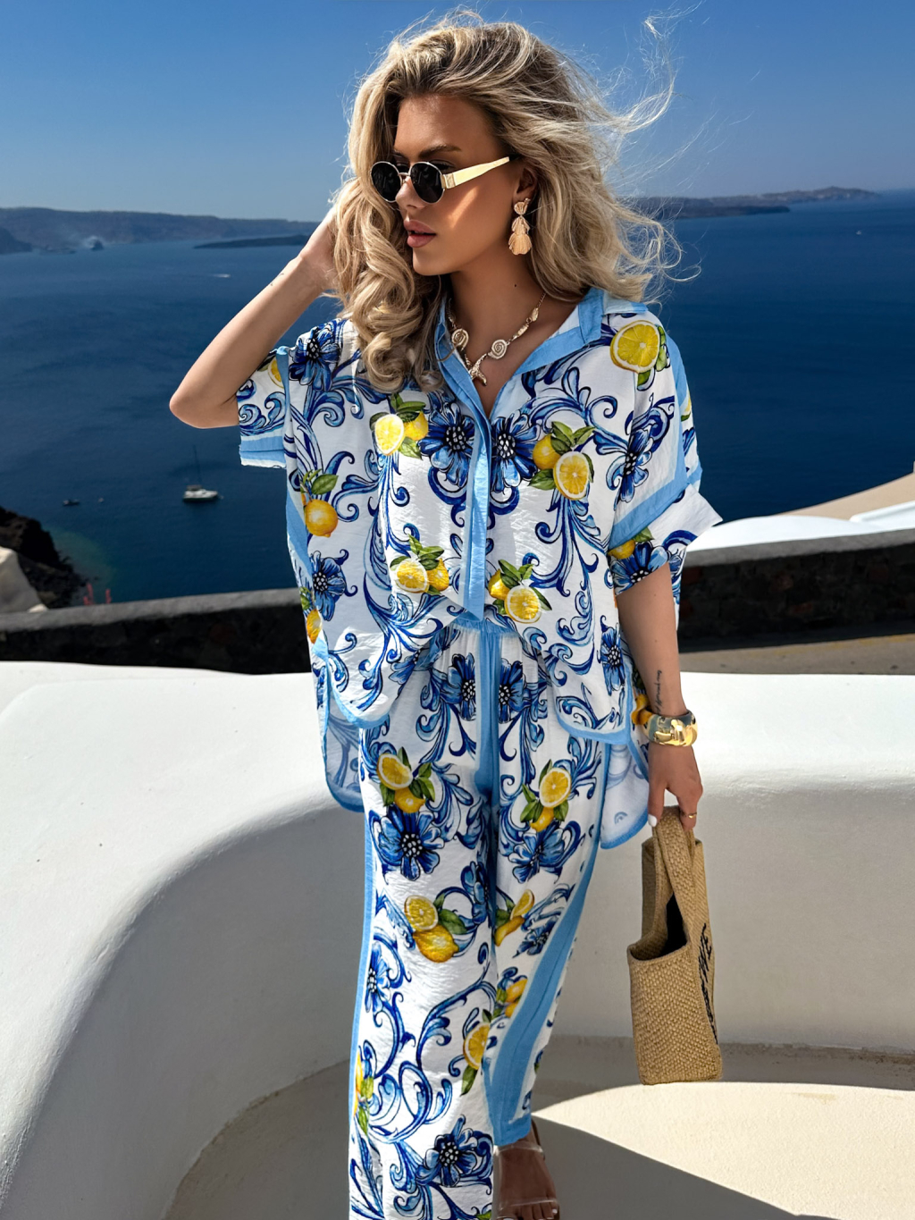 Modrá letná široká košeľa MAVELLA s citrónmi