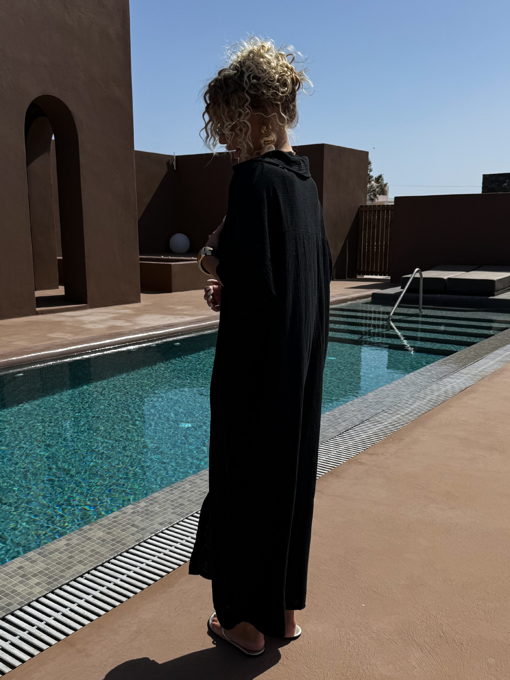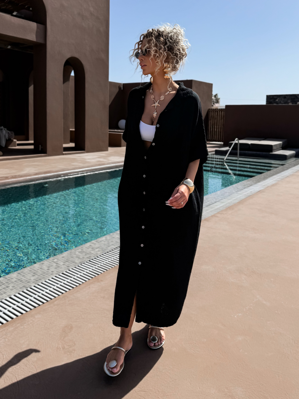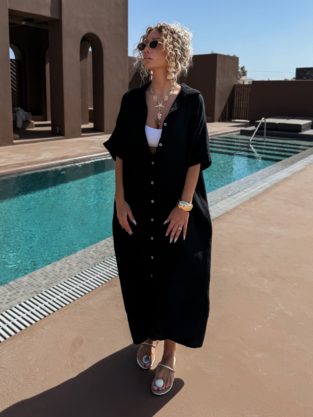 Čierne dlhé mušelínové košeľové maxi šaty NUKET