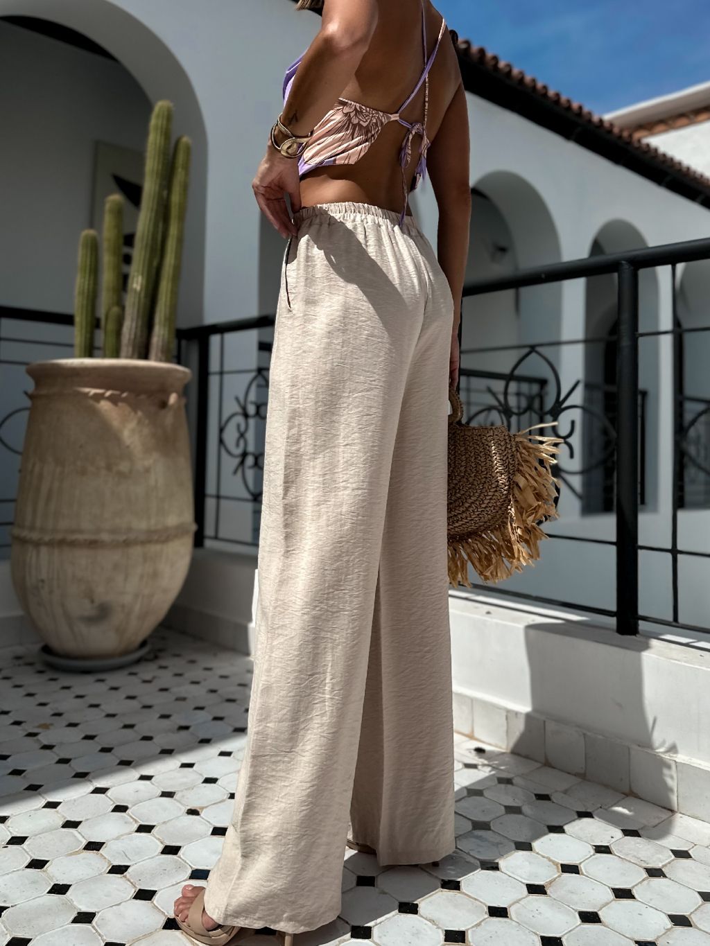 Béžové široké voľné nohavice TANDAS