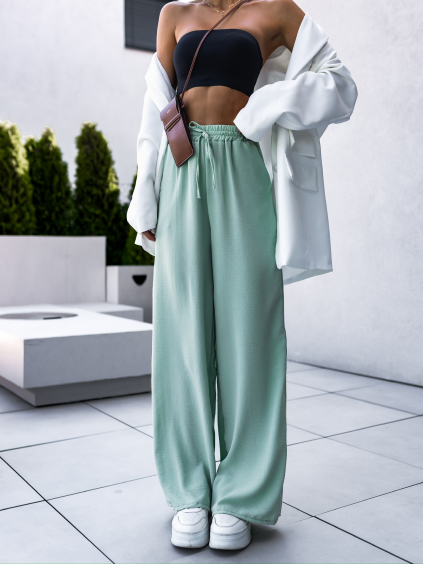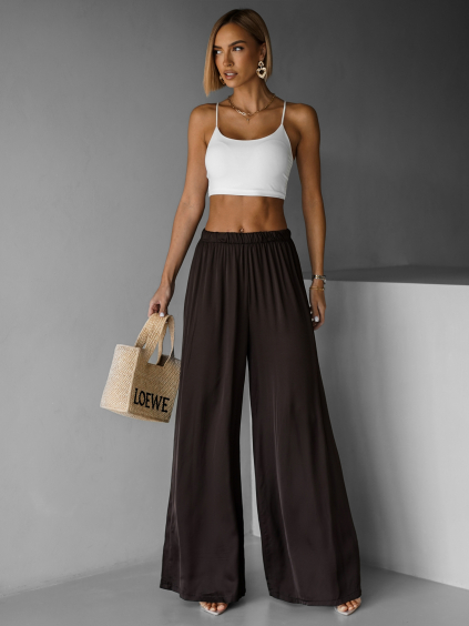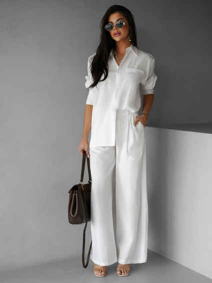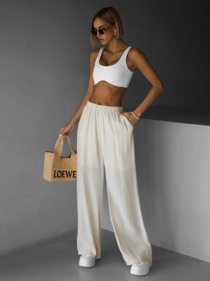Bílé saténové široké nohavice SITAKE