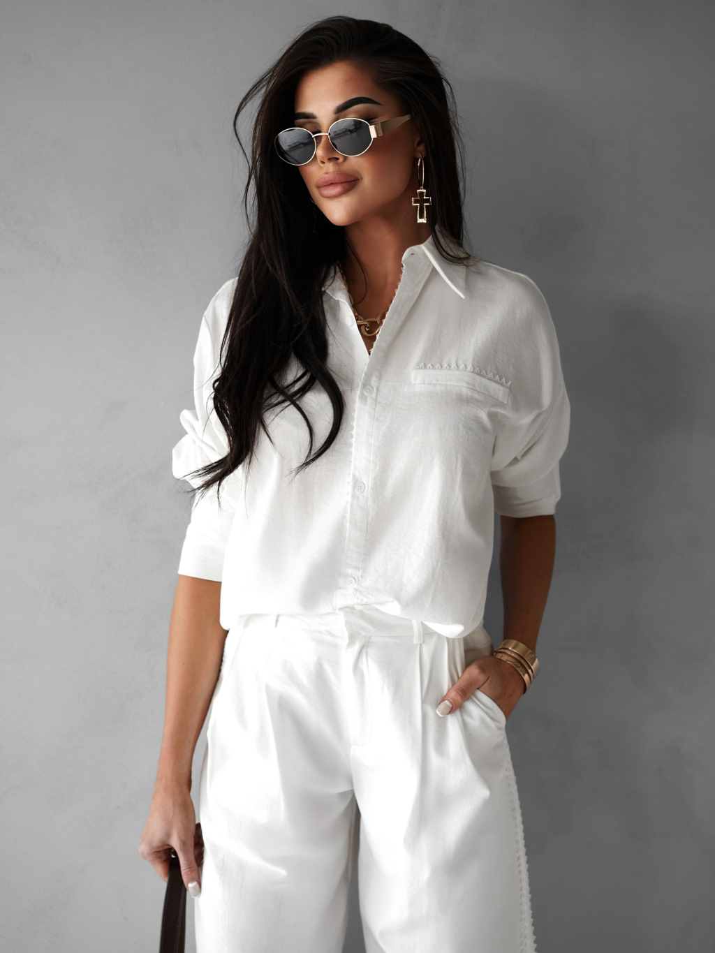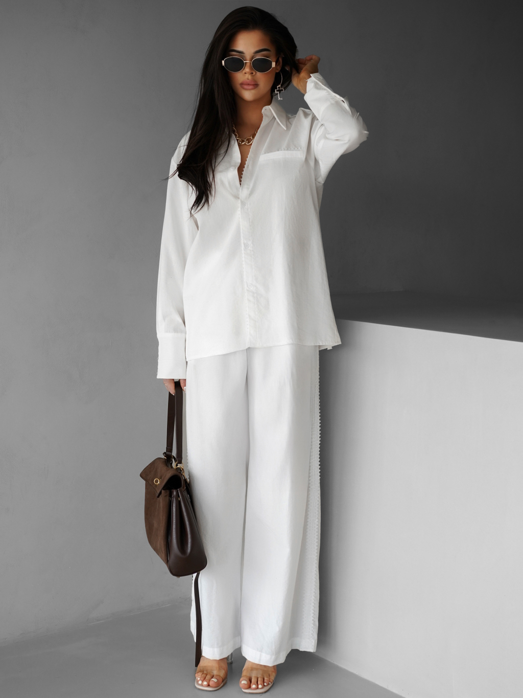 Biele široké ľahké voľné nohavice BODOY