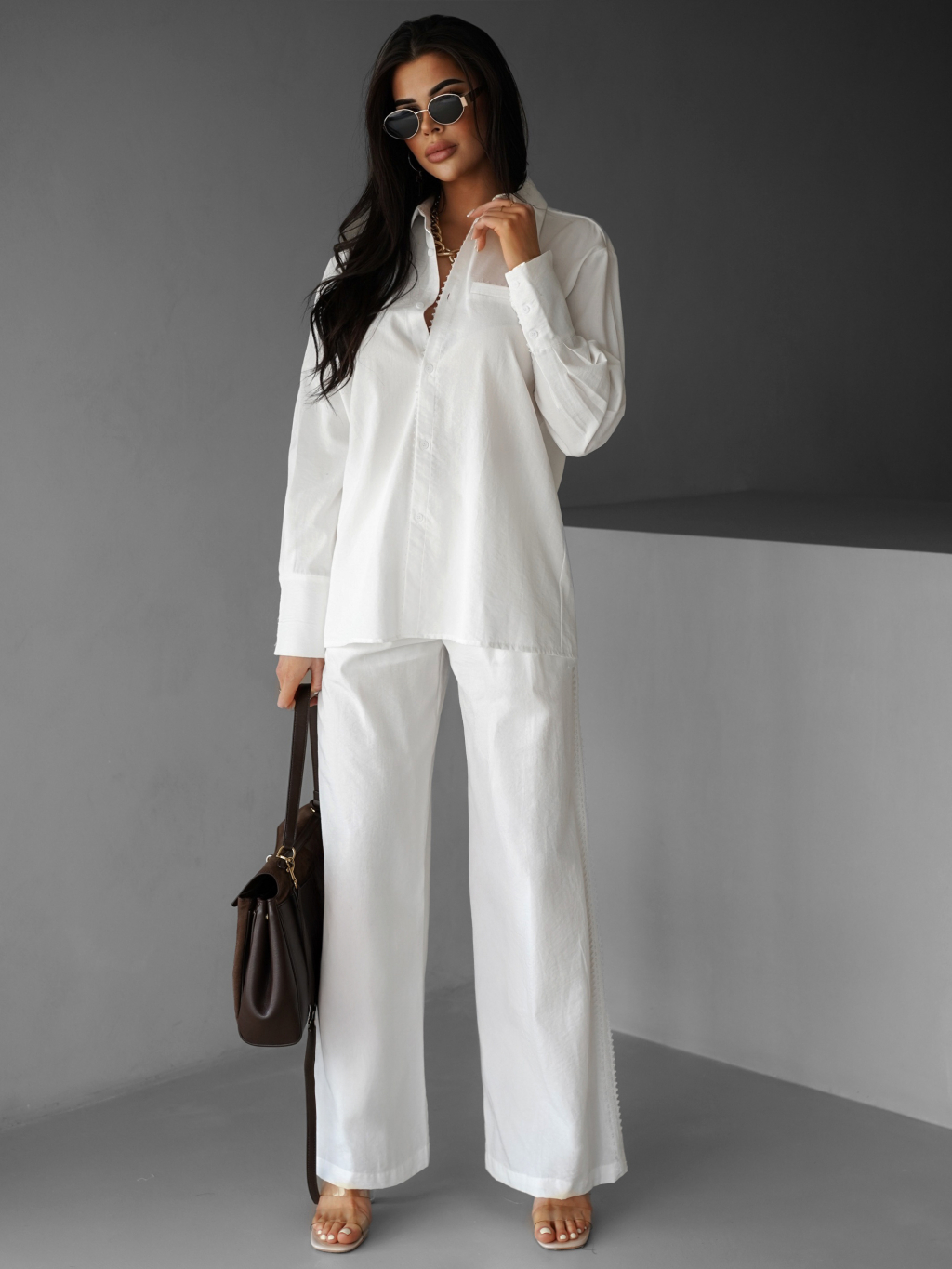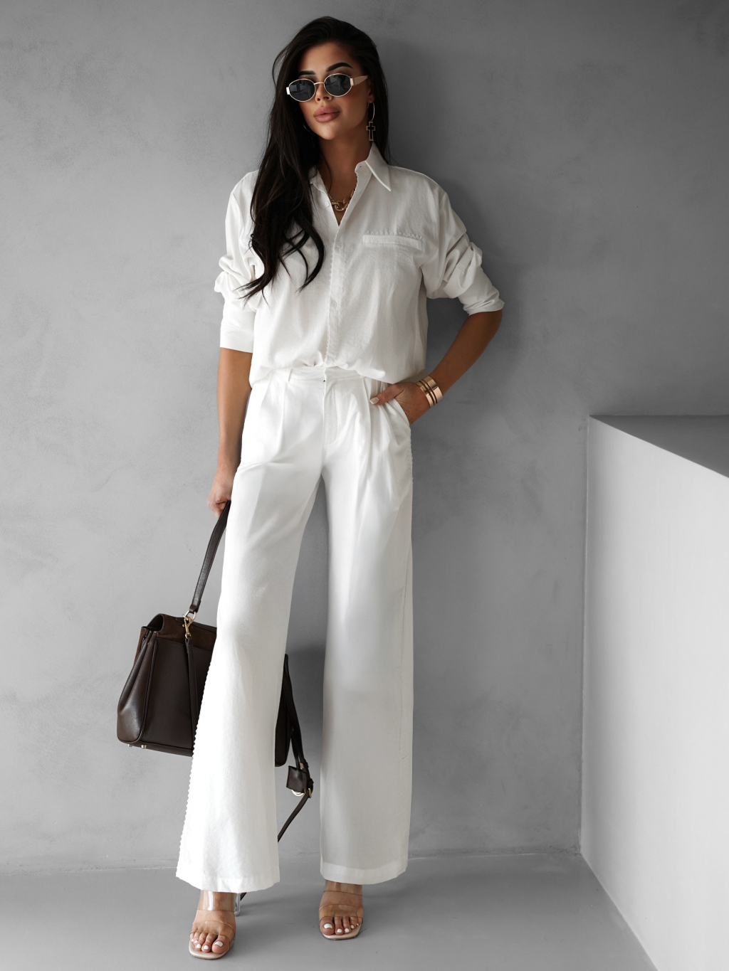 Biele široké ľahké voľné nohavice BODOY