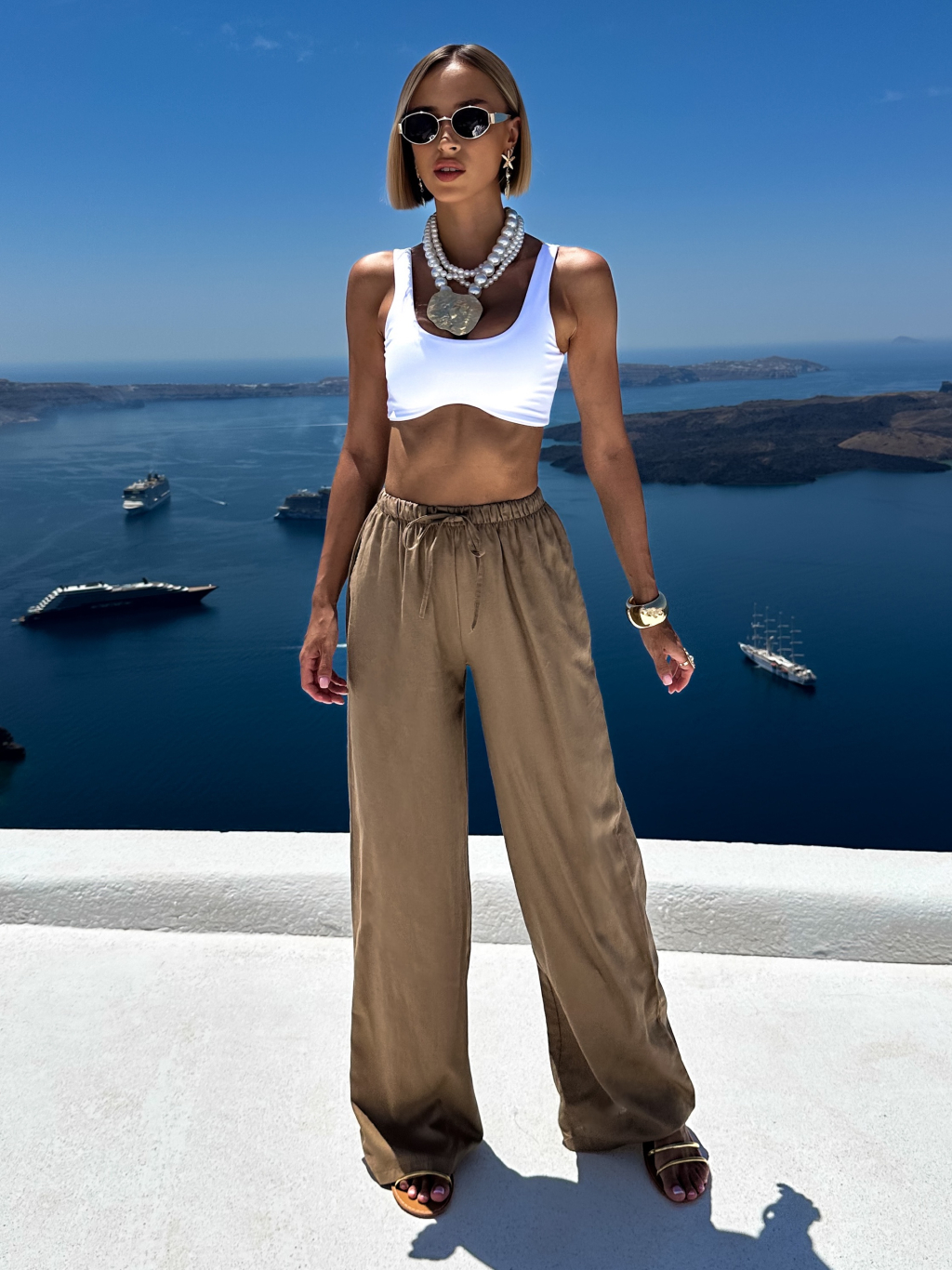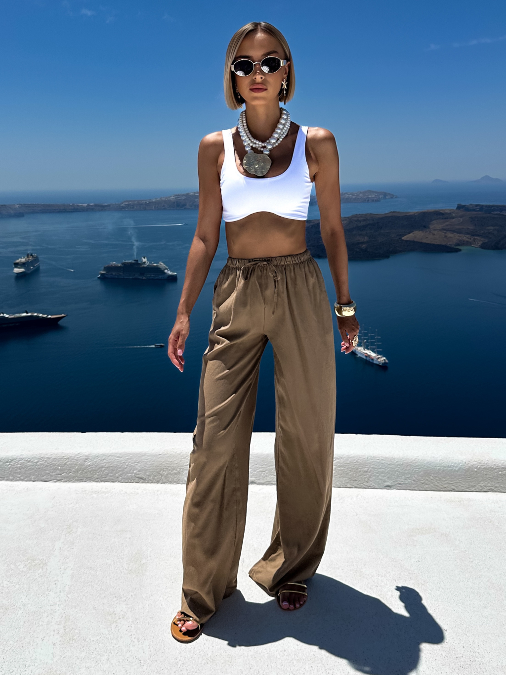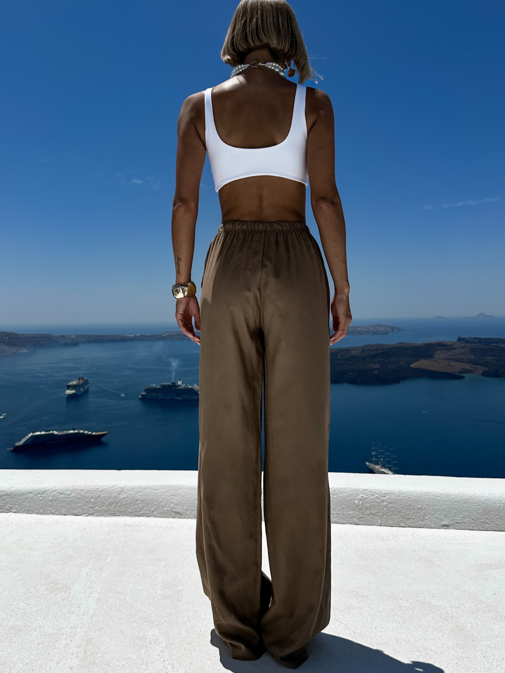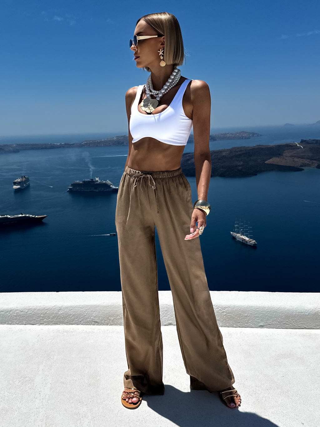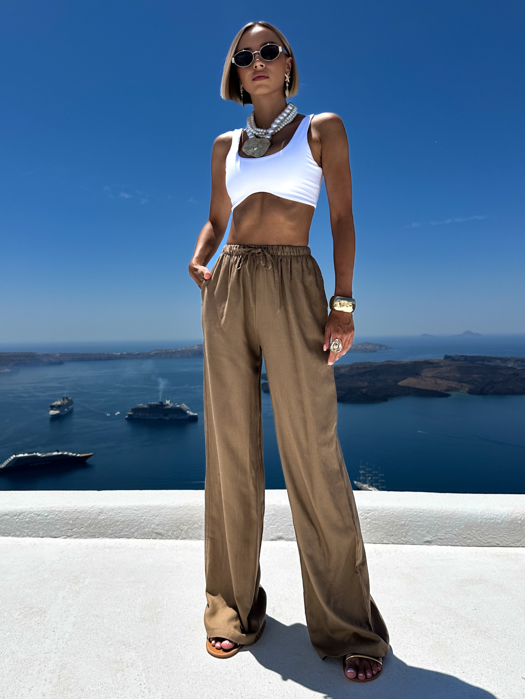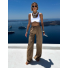 Hnedé letné ľanové nohavice CORNNET