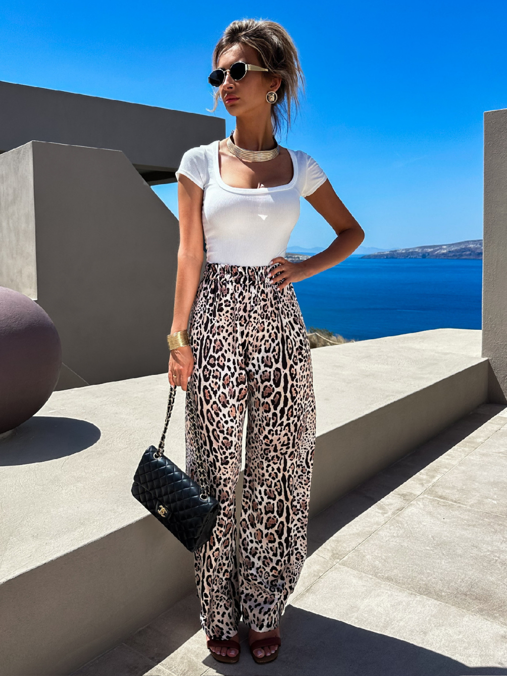 Krémové letné nohavice SPIDER s leopardím vzorom