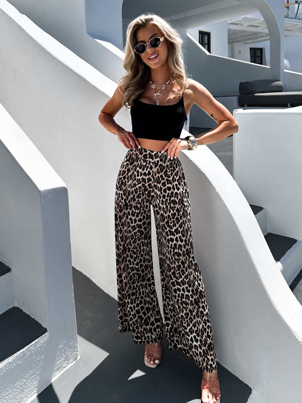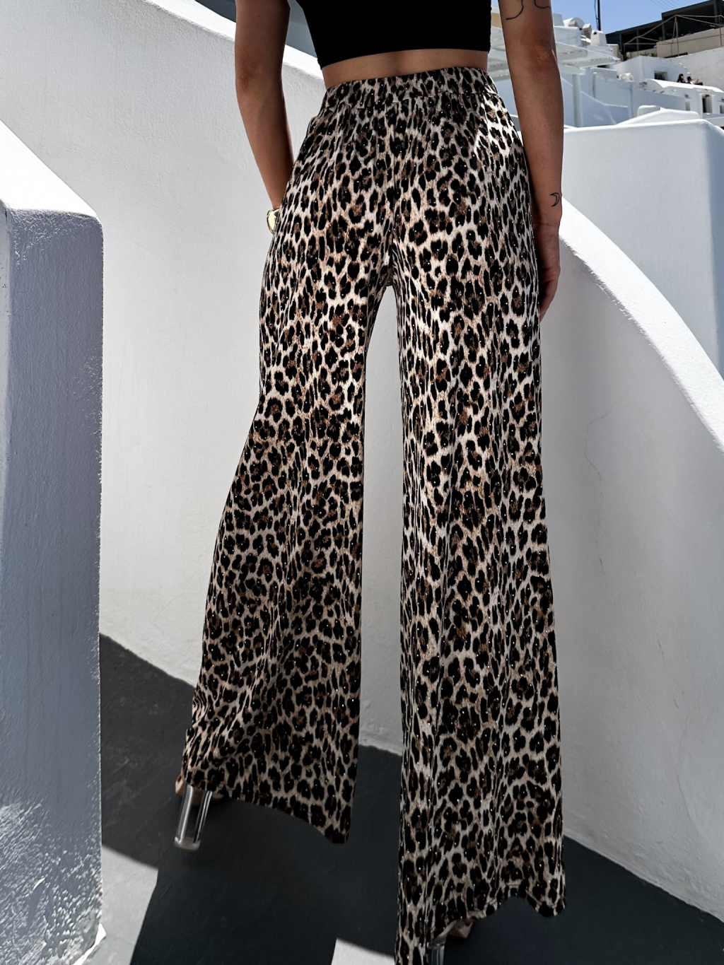 Leopardie letné široké nohavice ROSETA s kamienkami