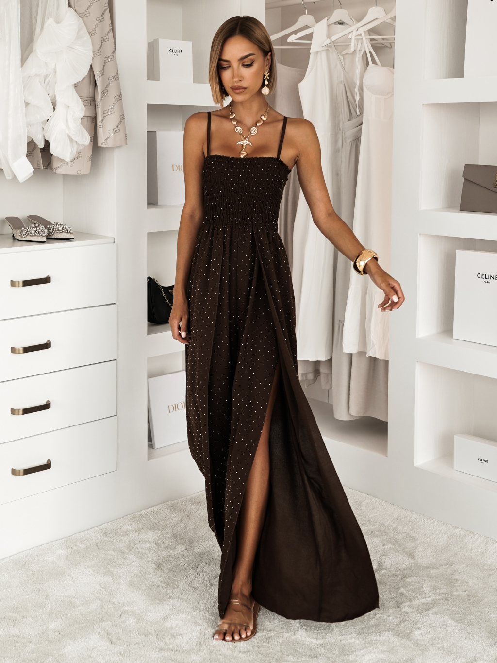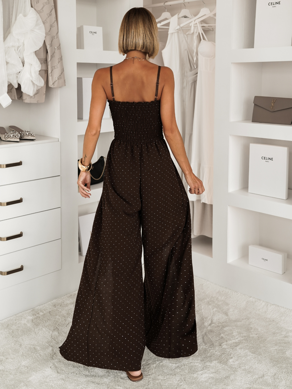 Hnedý štýlový dlhý overal KITHON s rázporkami