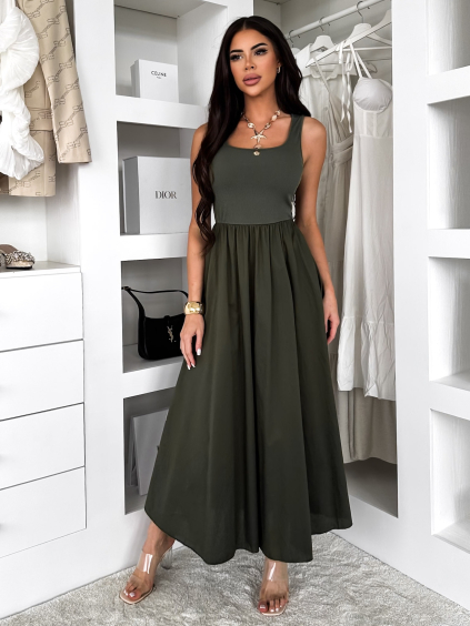 Hnedé dlhé šaty SLOMYX so špagetovými ramienkami