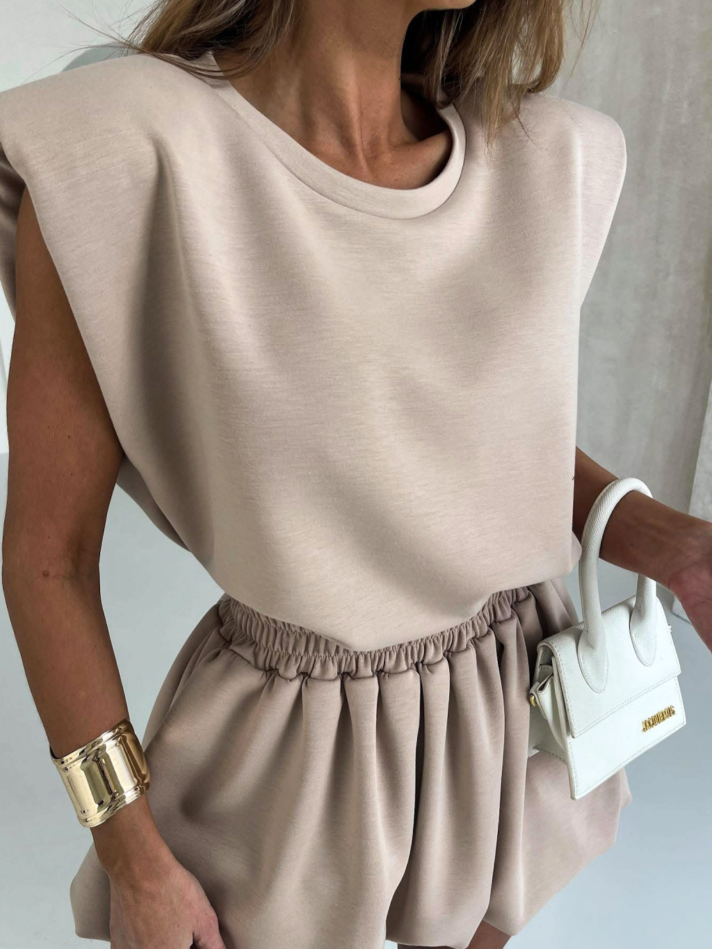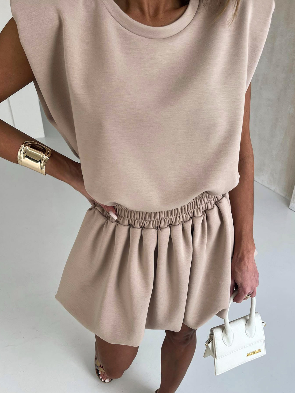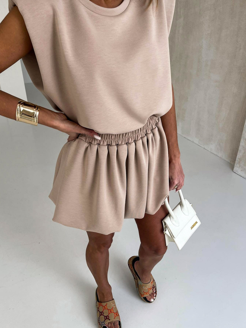 Béžový teplákový krátky komplet TAPPY so sukňou
