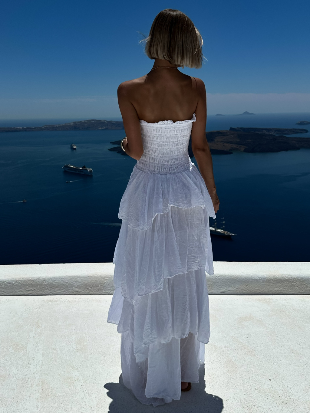 Biele 100% bavlna dlhé elegantné šaty ELYRA s volánmi
