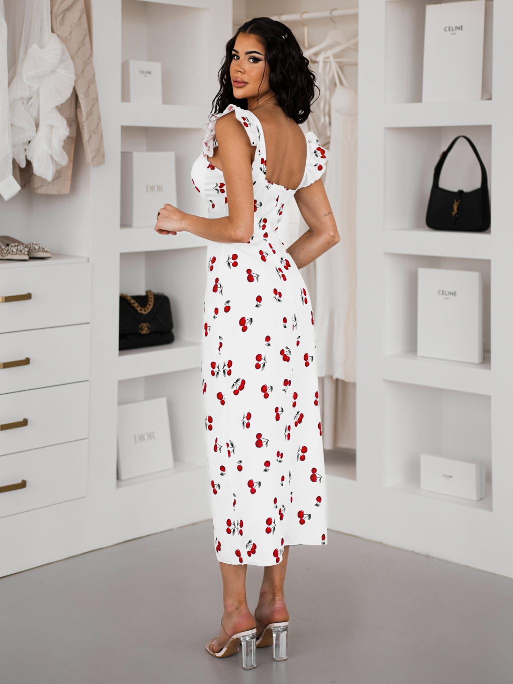 Biele letné šaty SILVURA s čerešničkami