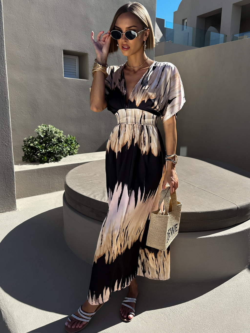 Čierne dlhé letné šaty DICKET s výstrihom do V