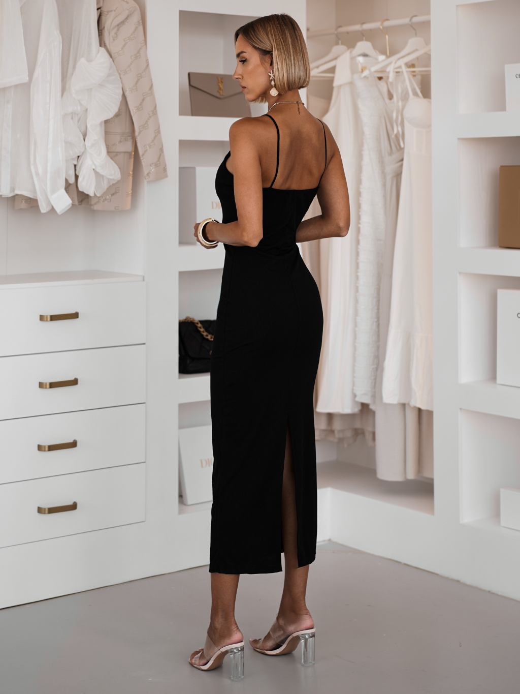 Čierne dlhé šaty SLOMYX so špagetovými ramienkami