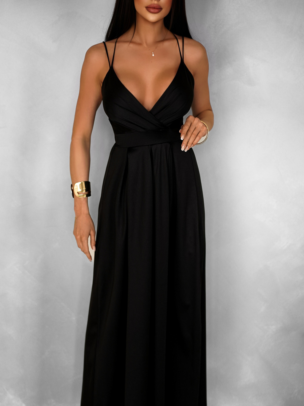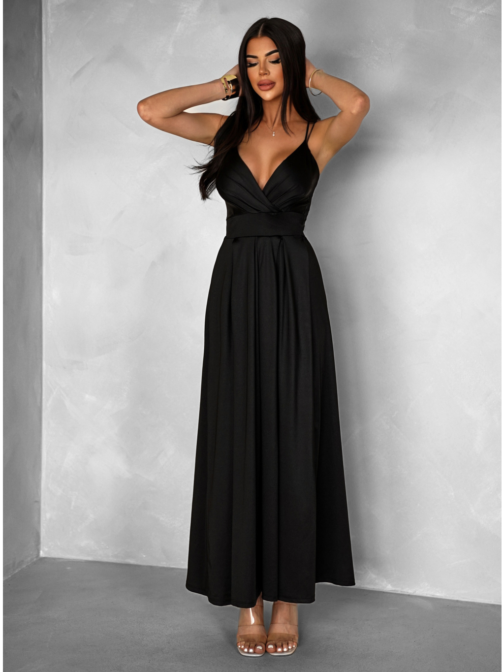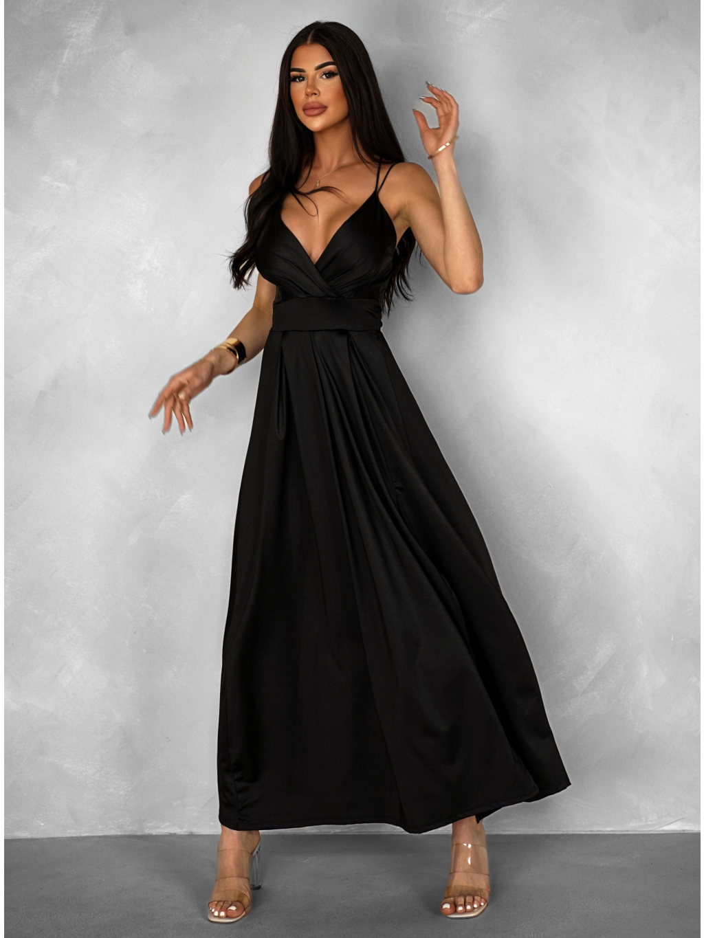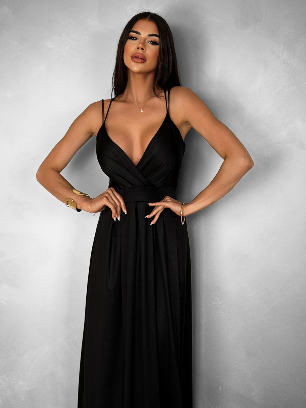 Čierne elegantné dlhé šaty SAURANA s rázporkom