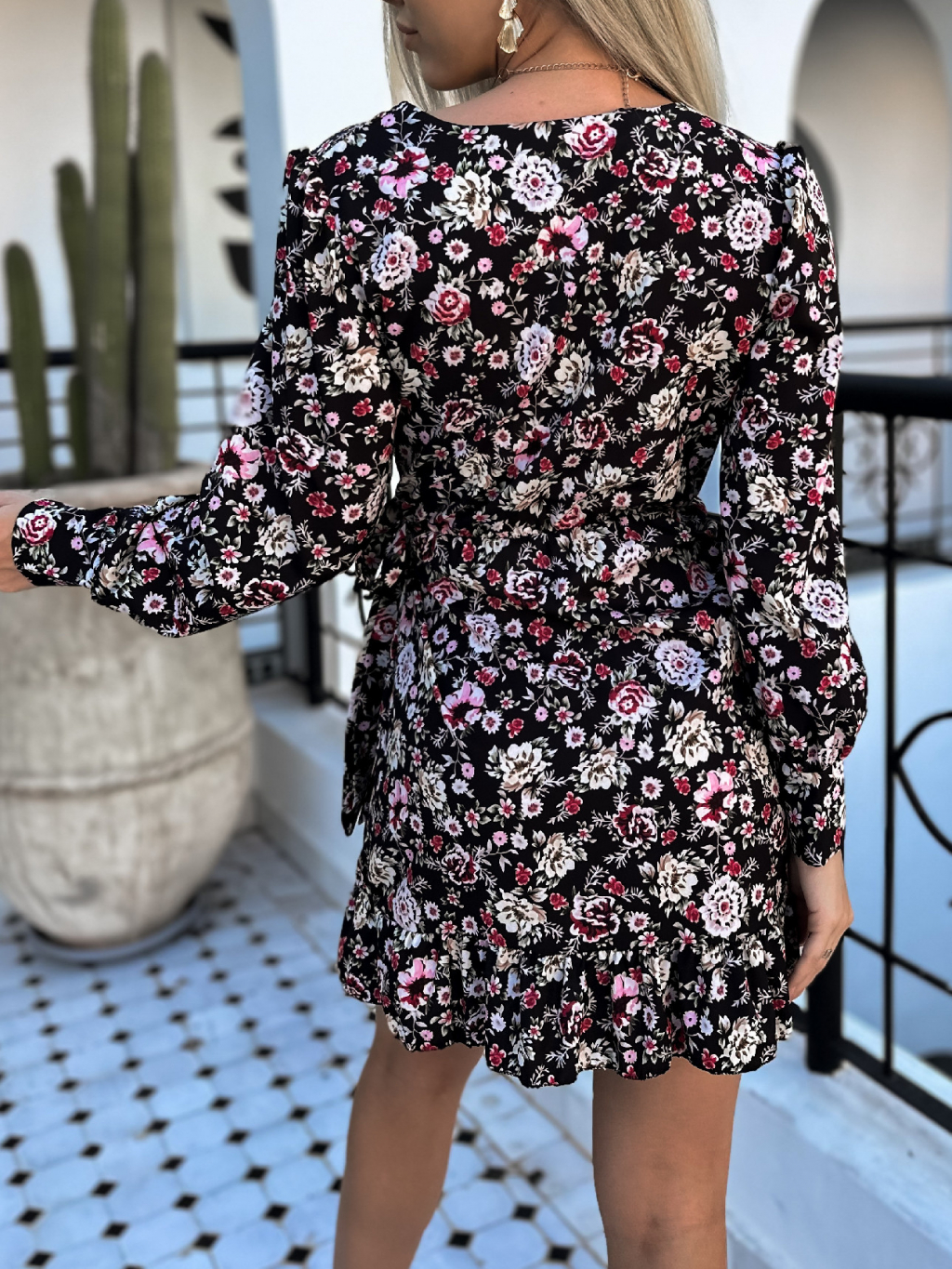 Čierne kvetinové šaty OTISE s volánom