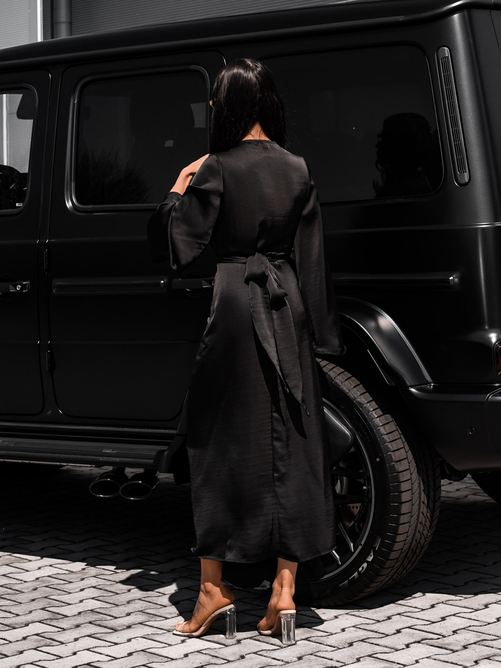 Čierne zoštíhľujúce dlhé šaty ELITE s viazaním