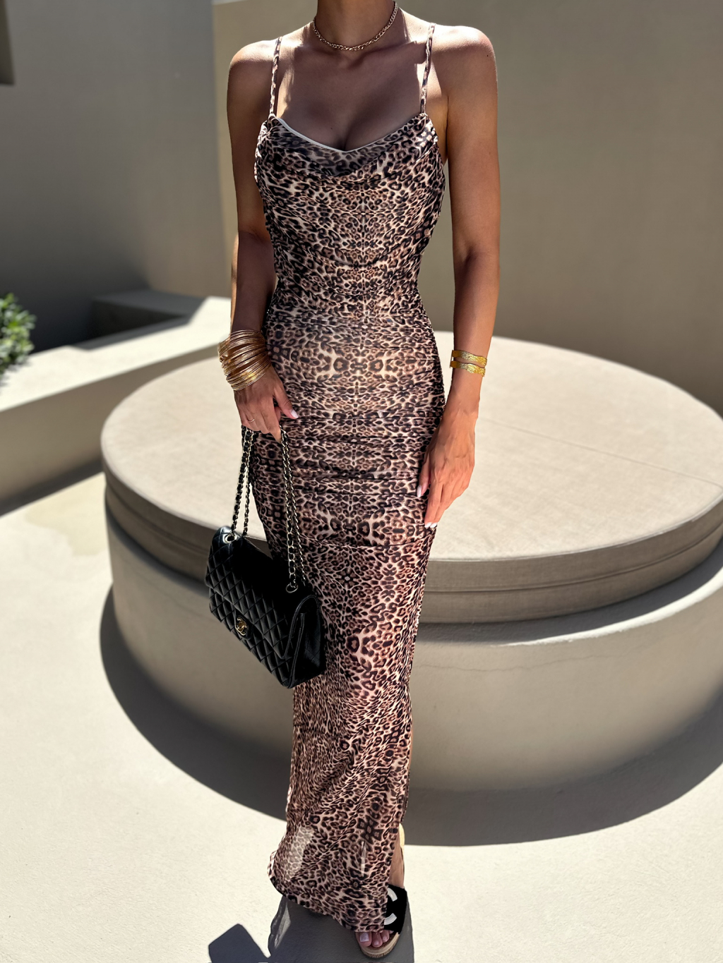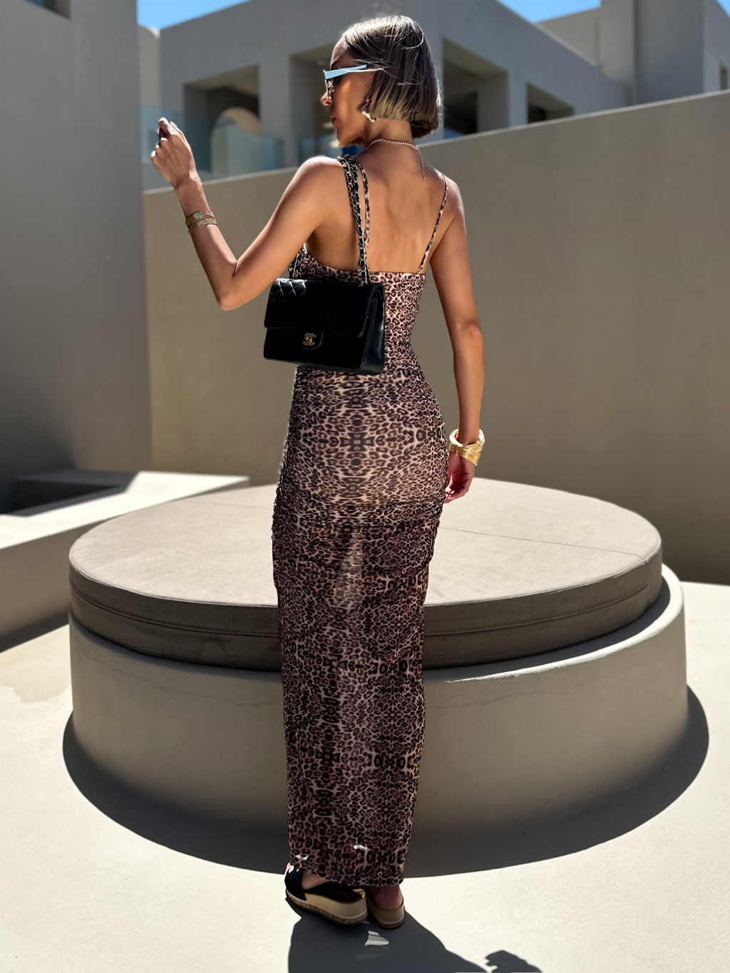 Hnedé elegantné šaty KYRYL s leopardím vzorom