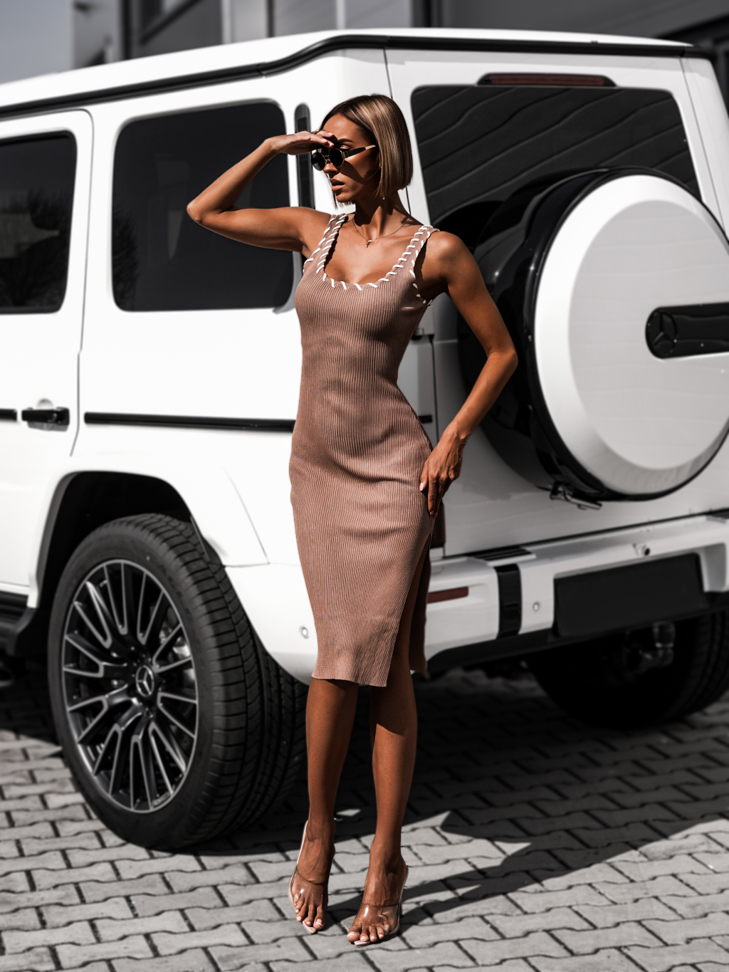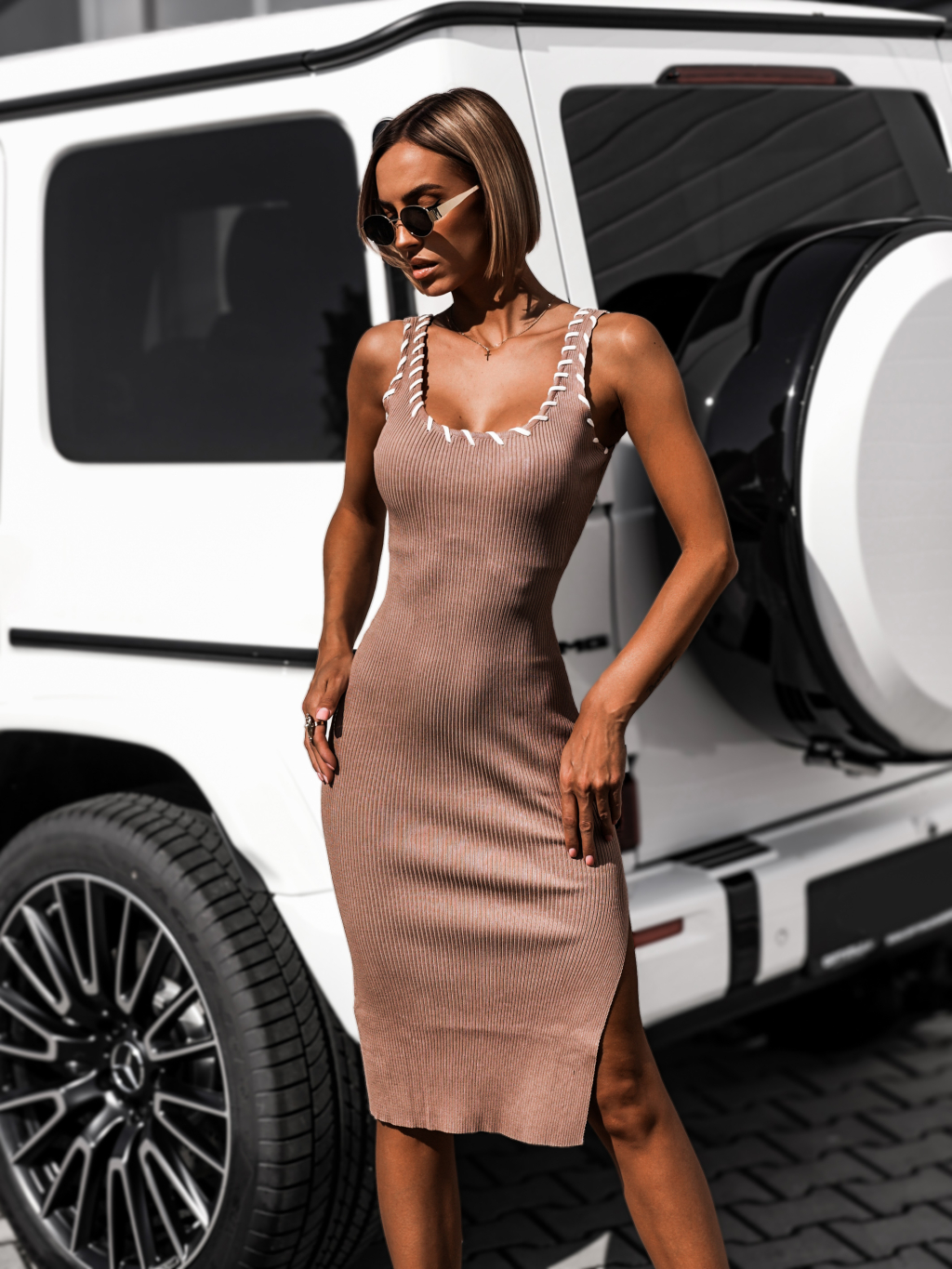 Hnedé rebrované midi šaty KALMAR