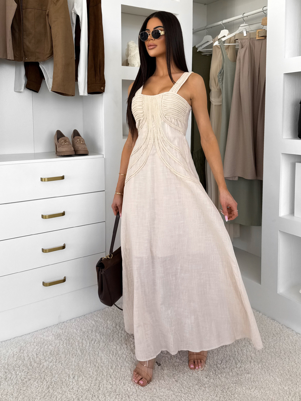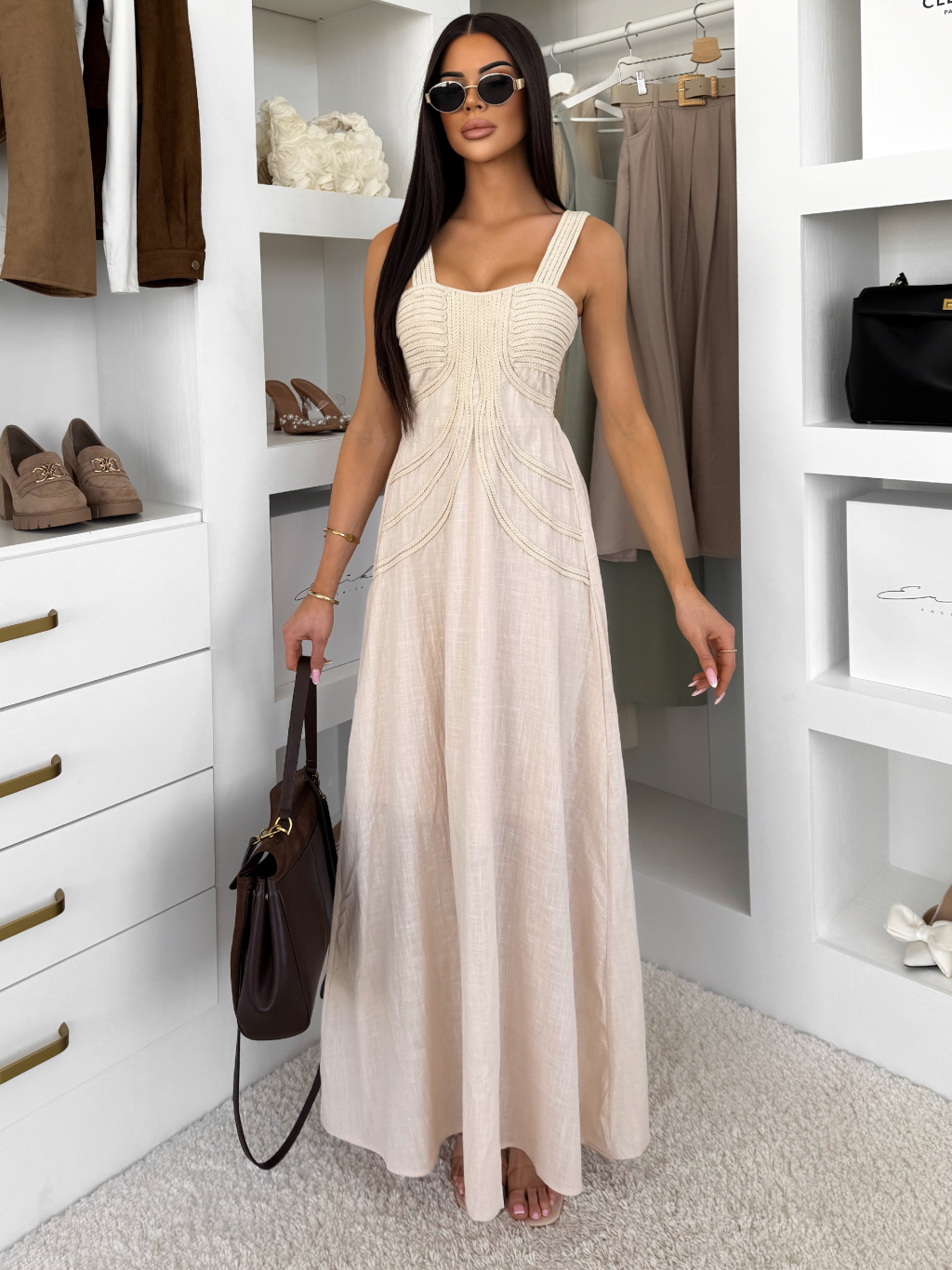 Krémové dlhé boho šaty HESPERIA na ramienka