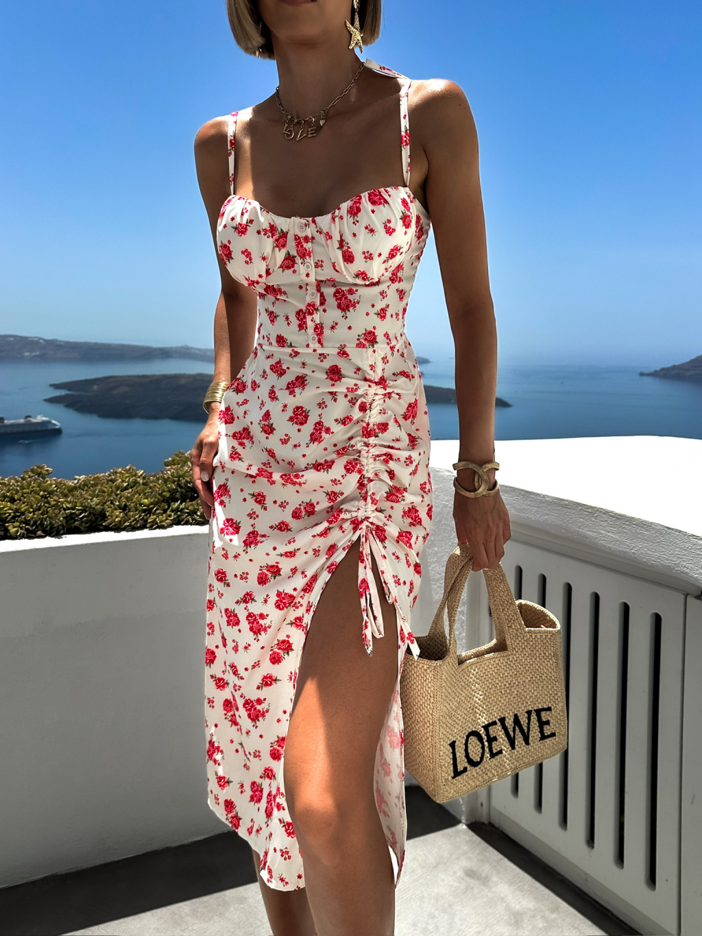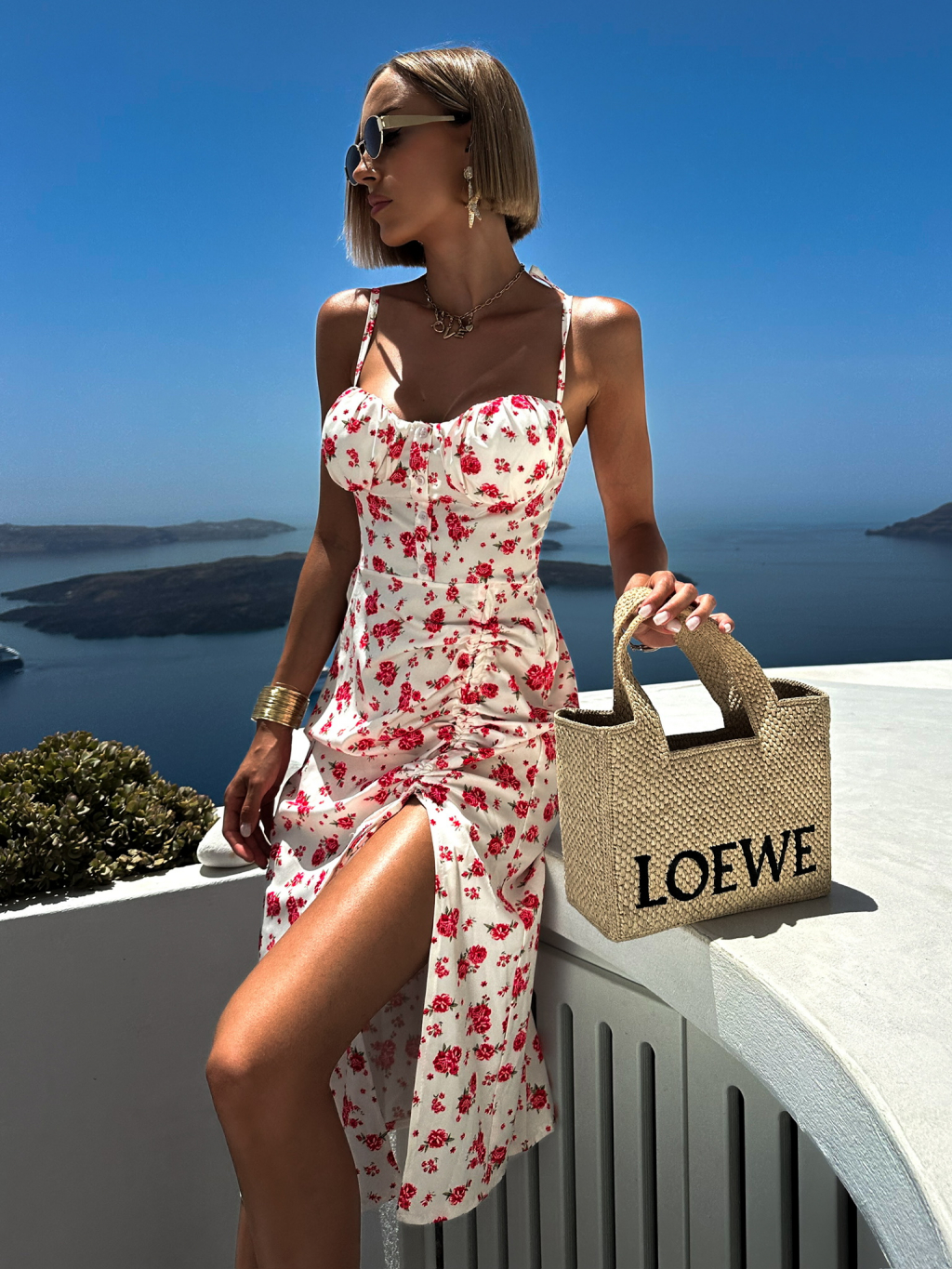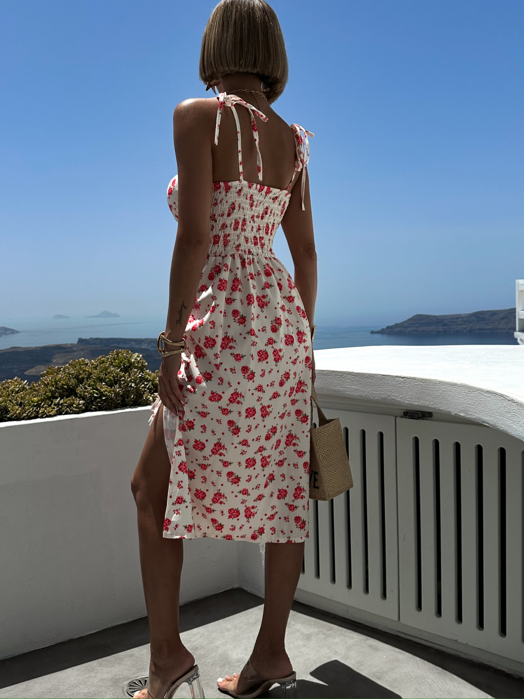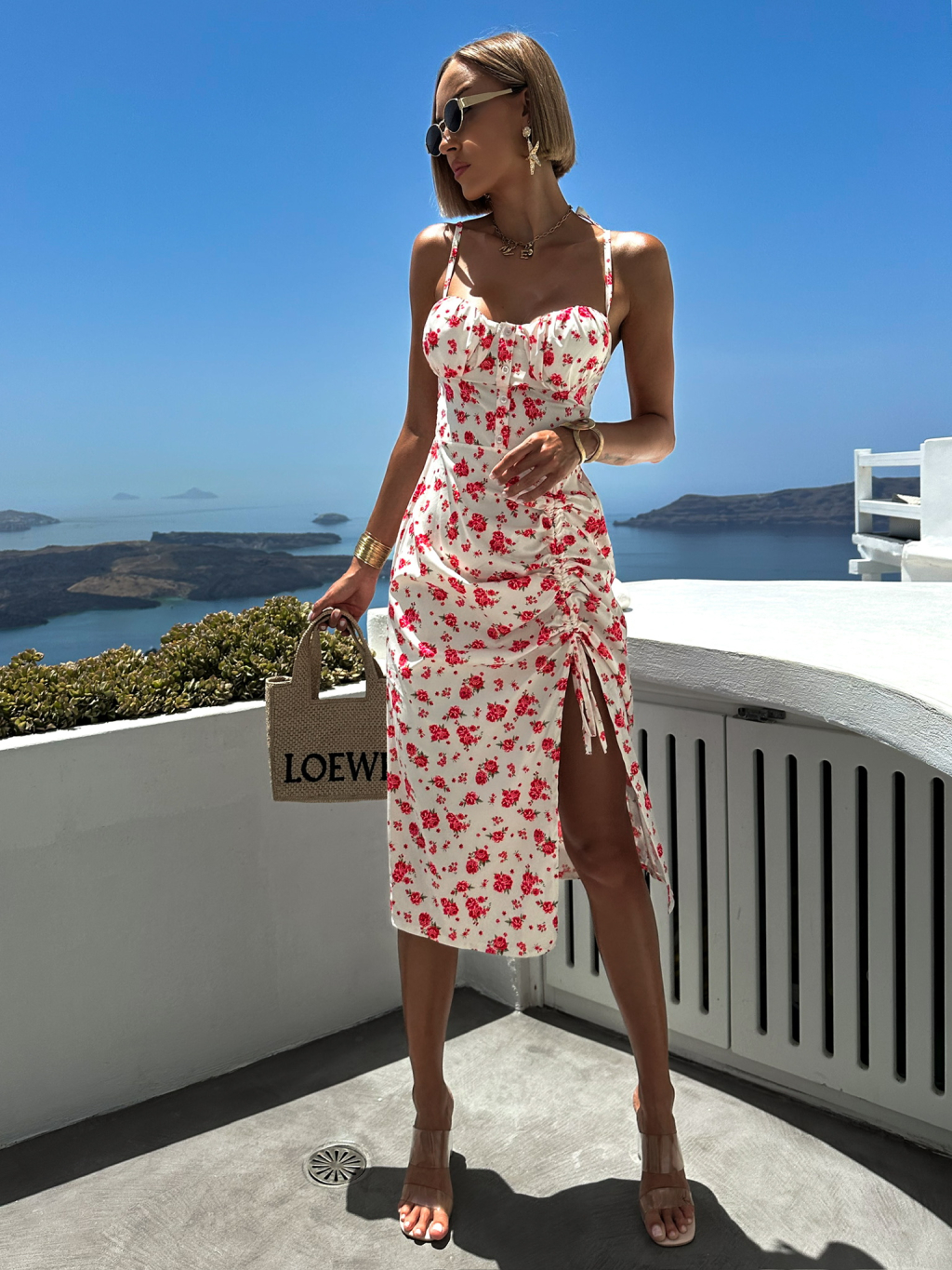 Krémové kvetinové midi šaty MILENKO s rázporkom