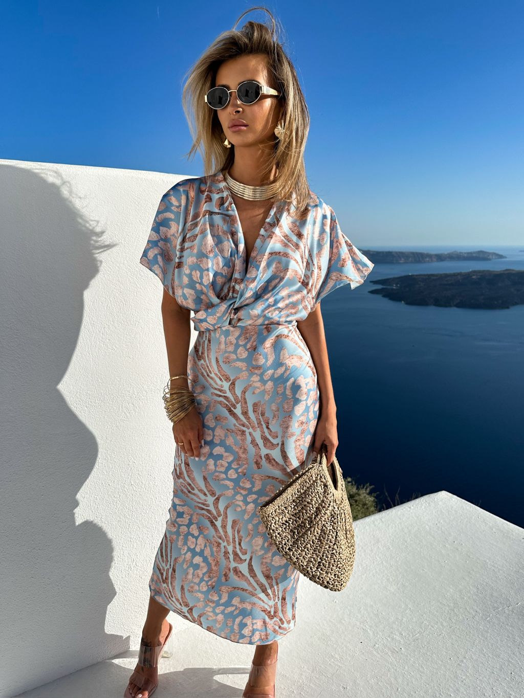 Modré elegantné šaty SQUARD s leopardím vzorom