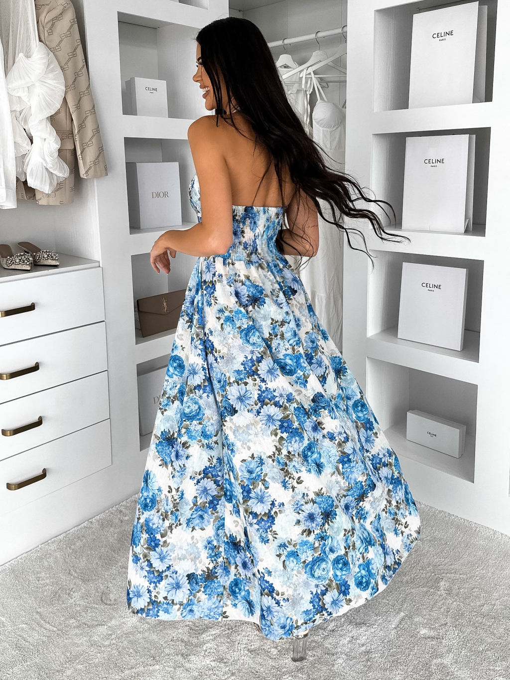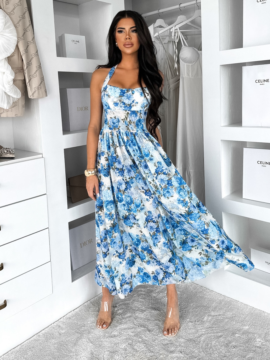 Modré letné dlhé kvetované šaty YSMERA