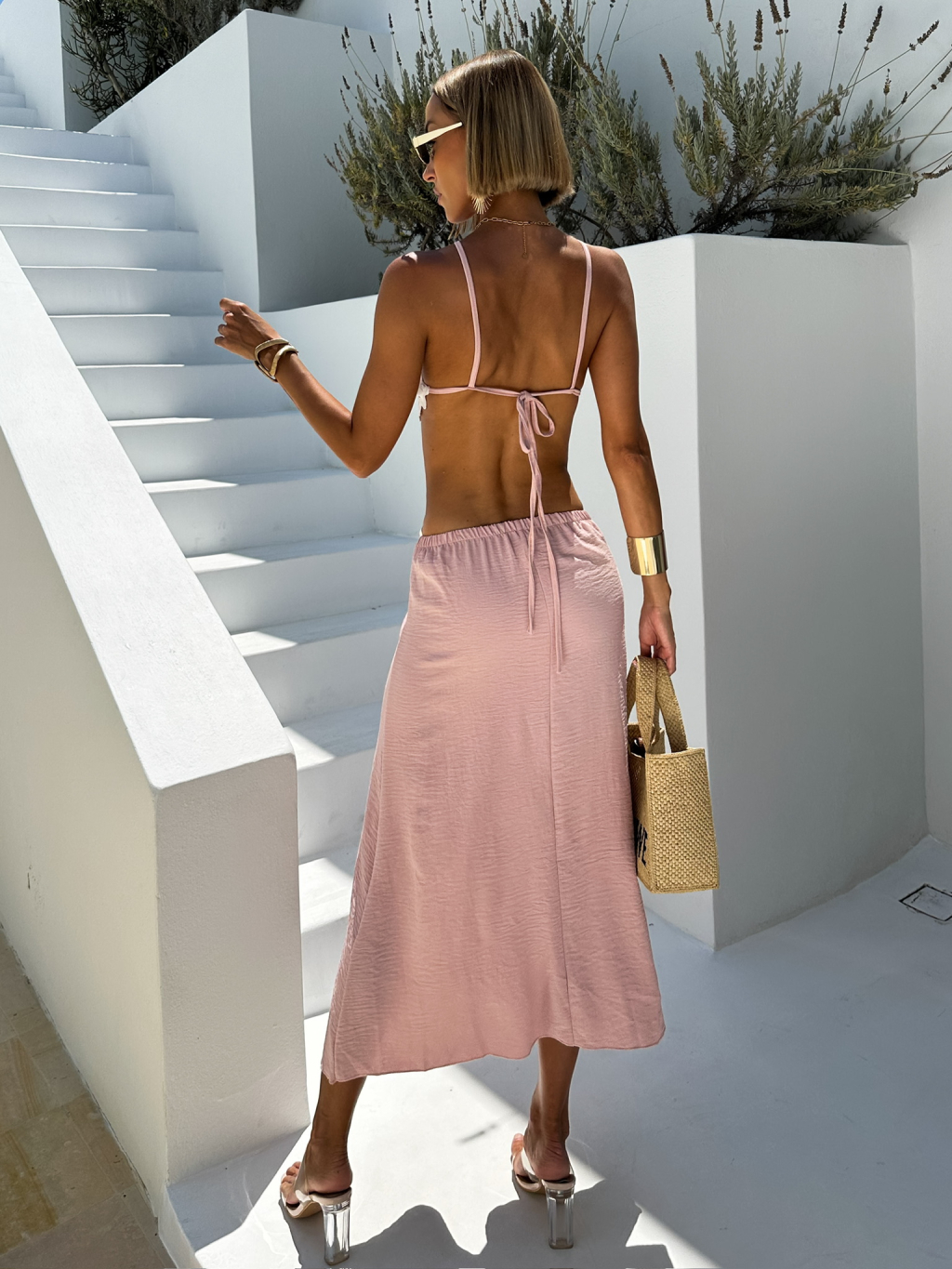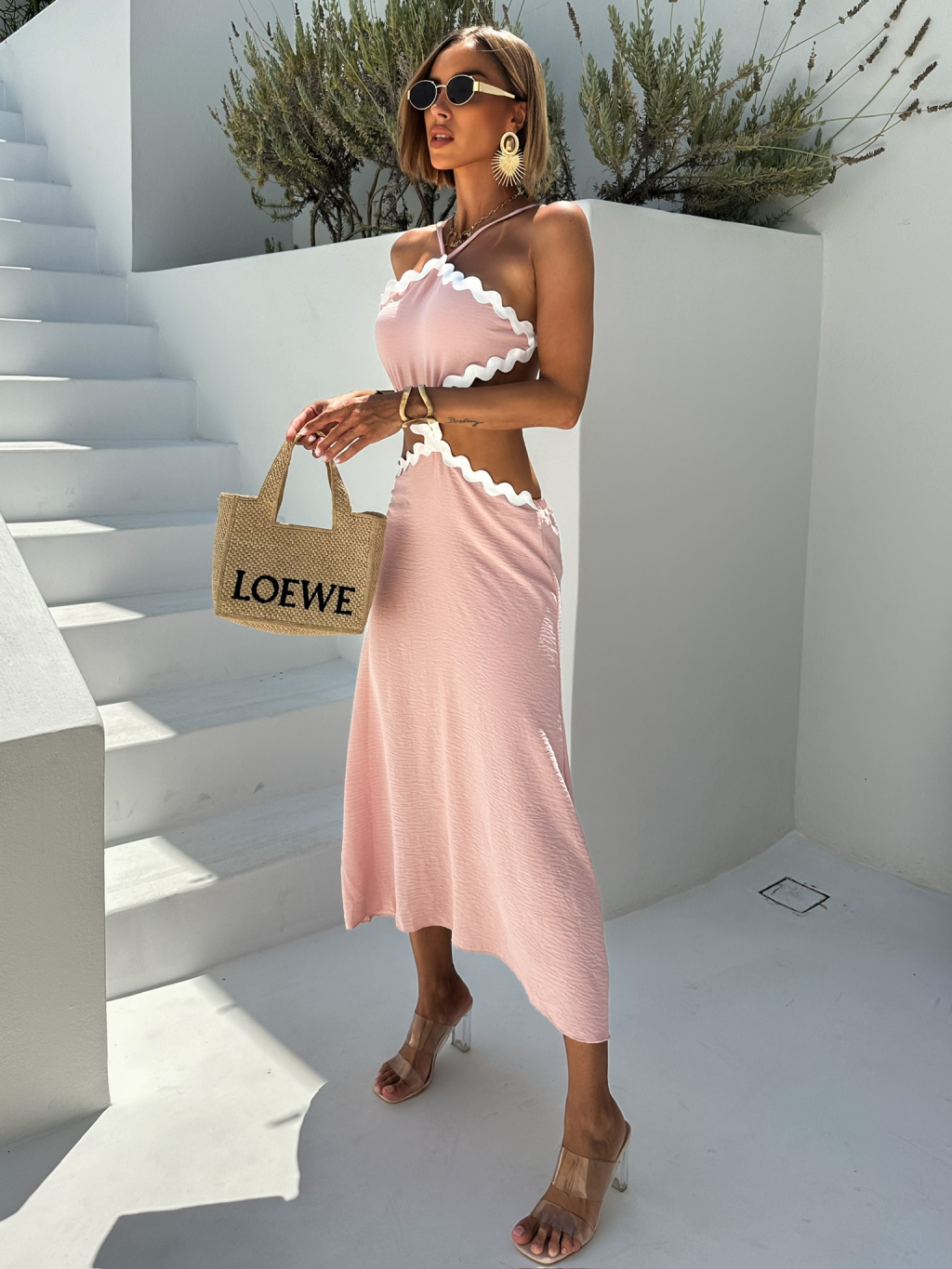 Staroružové dlhé šaty VANILLA s prestrihmi
