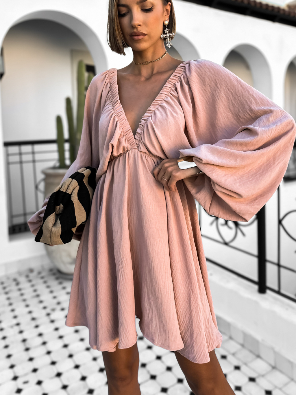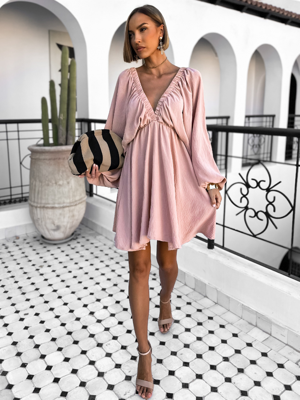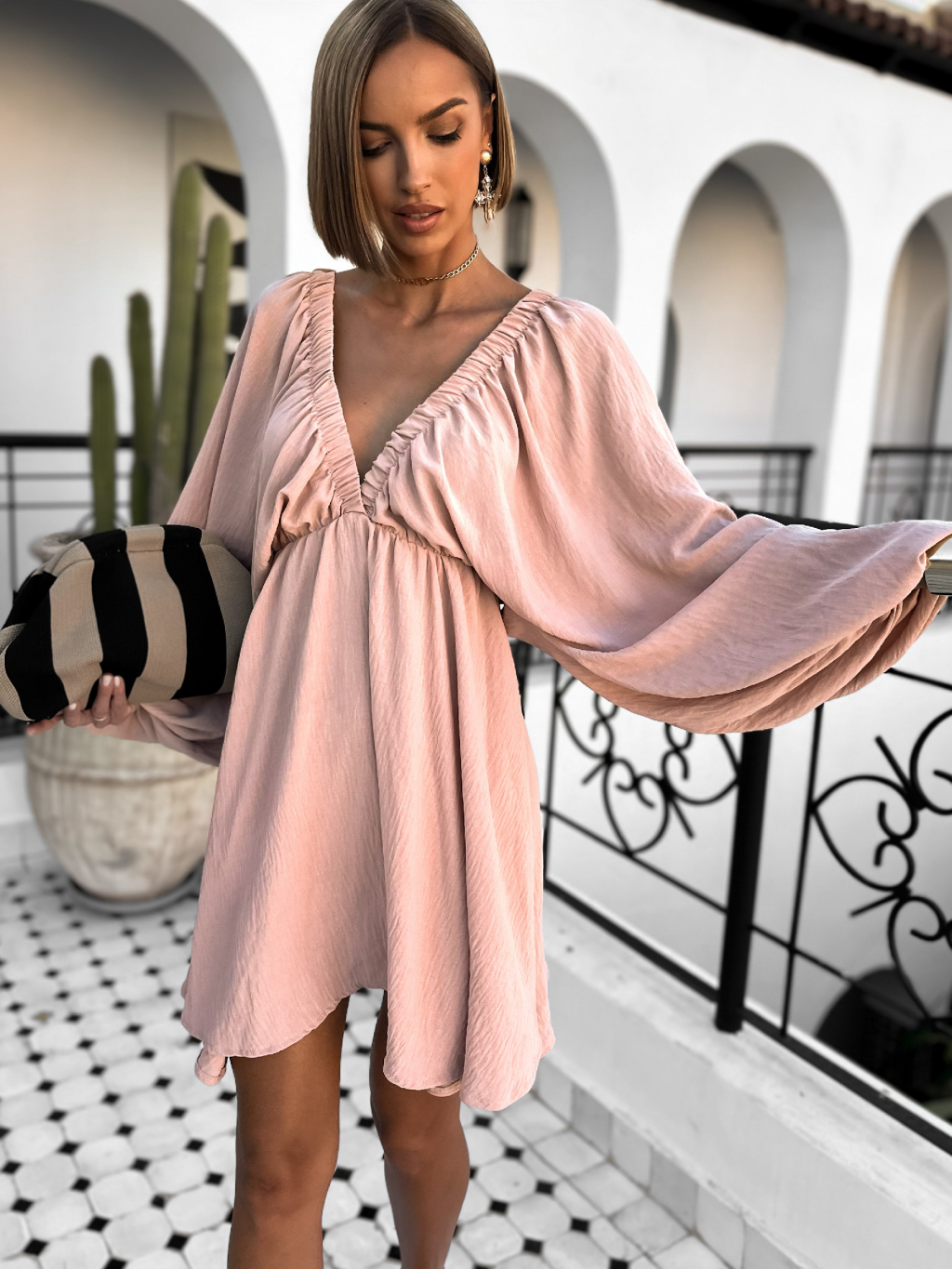Staroružové krátke boho šaty RANGE s výstrihom do V